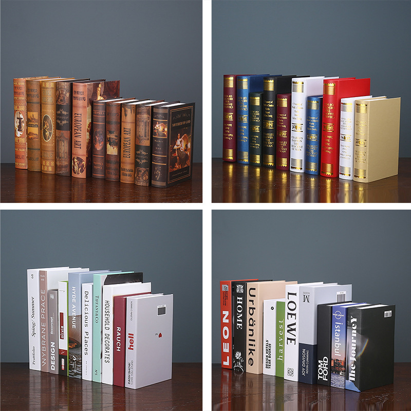 偽の本のシミュレーション本の置物の現代の軽い豪華なサンプルの間の書斎の本棚の事務室の本棚の道具の本の装飾