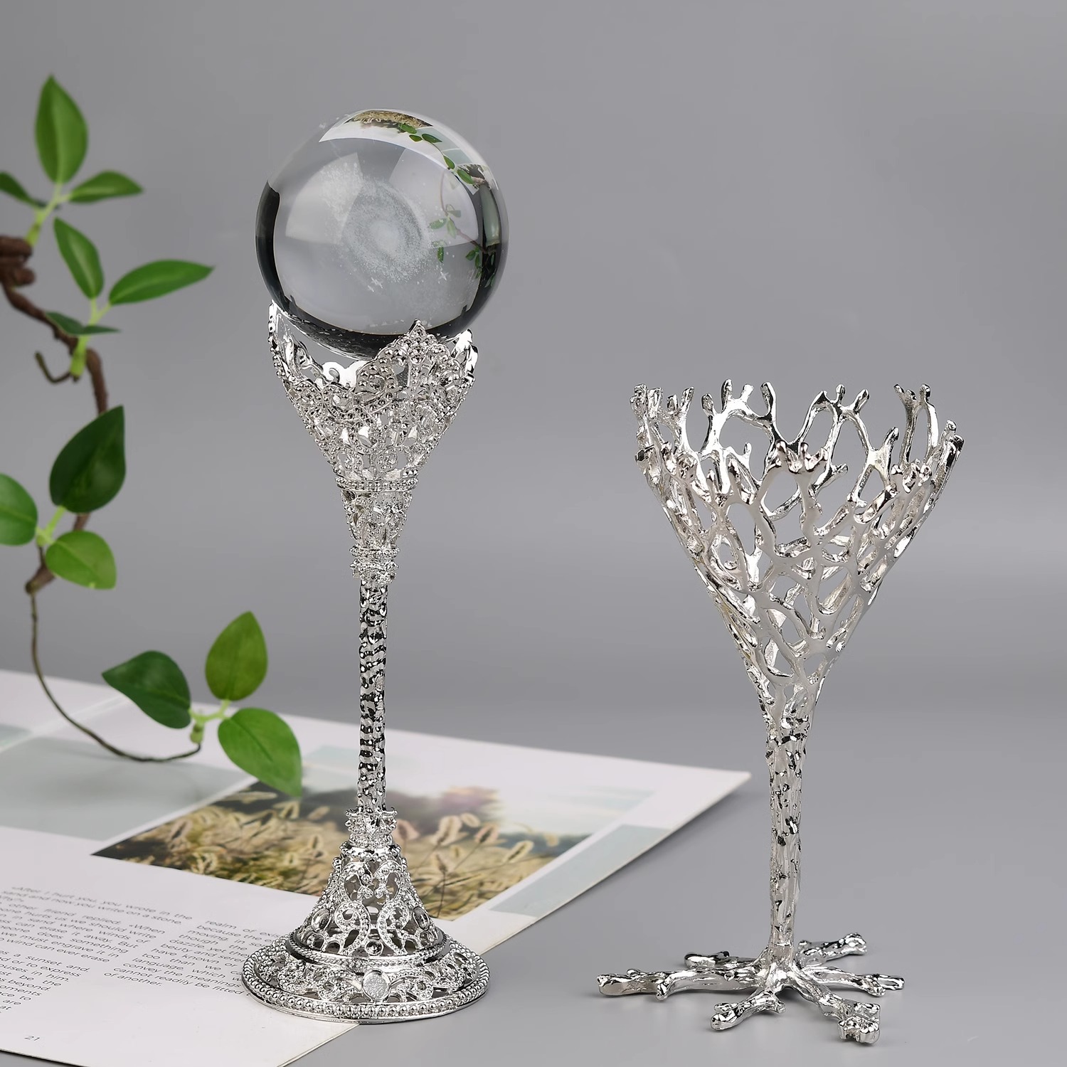 ワイングラスクリスタル合金クリスタルボールベースベース収納ラックボールホルダー金属ベース鉱山標準装飾品ホルダー