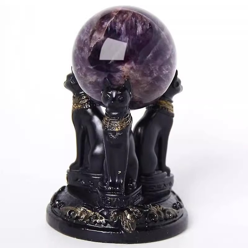 月の女神の3匹の狼の手のバススターの猫の女神の彫像の水晶の玉はスタンドの樹脂の装飾の置物を展示します。