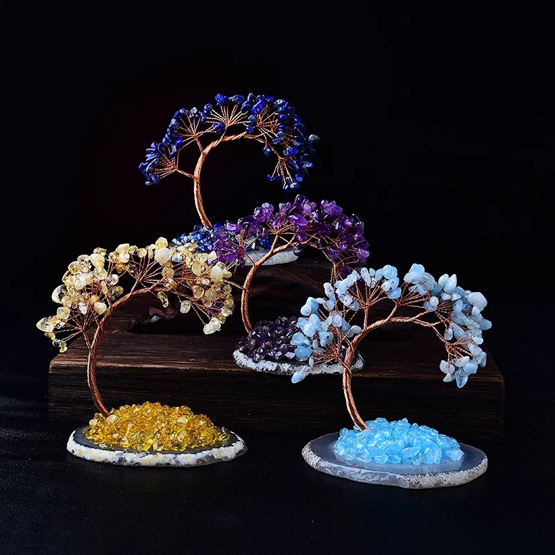 天然アクアマリンアメジスト砂利フォーチュンツリーオーナメントカラーツリーホームデコレーション手作り工芸品