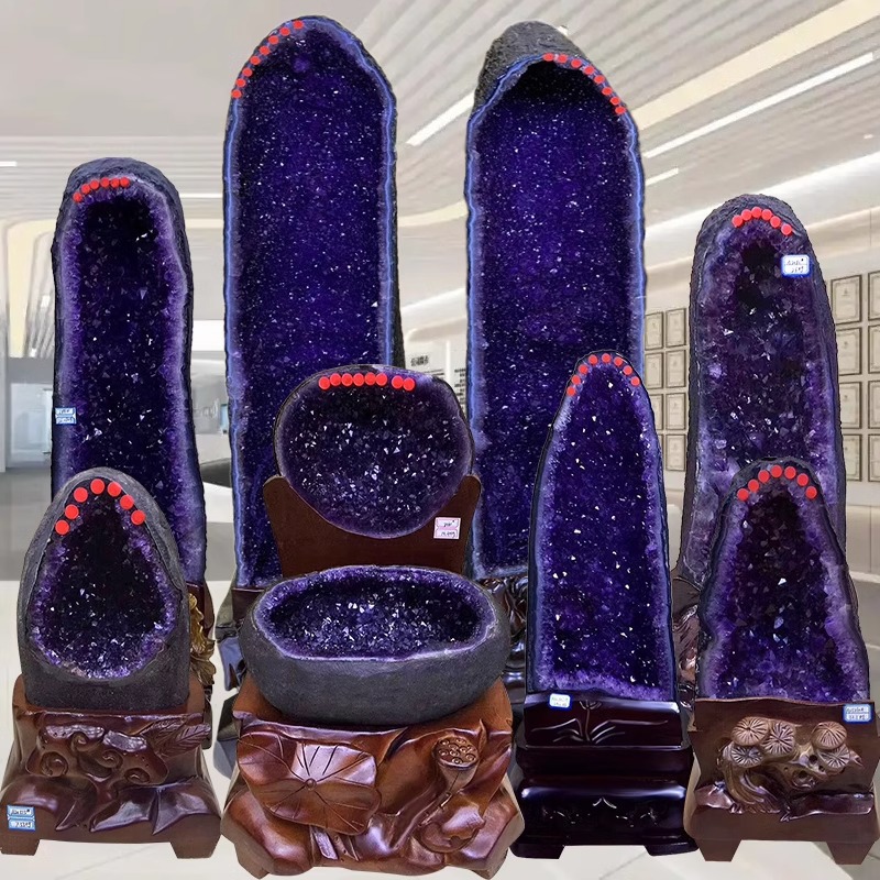 天然アメジスト洞窟装飾品恐竜の卵クリスタル洞窟アメジストクラスターマネーバッグ原石玄関オフィス装飾品