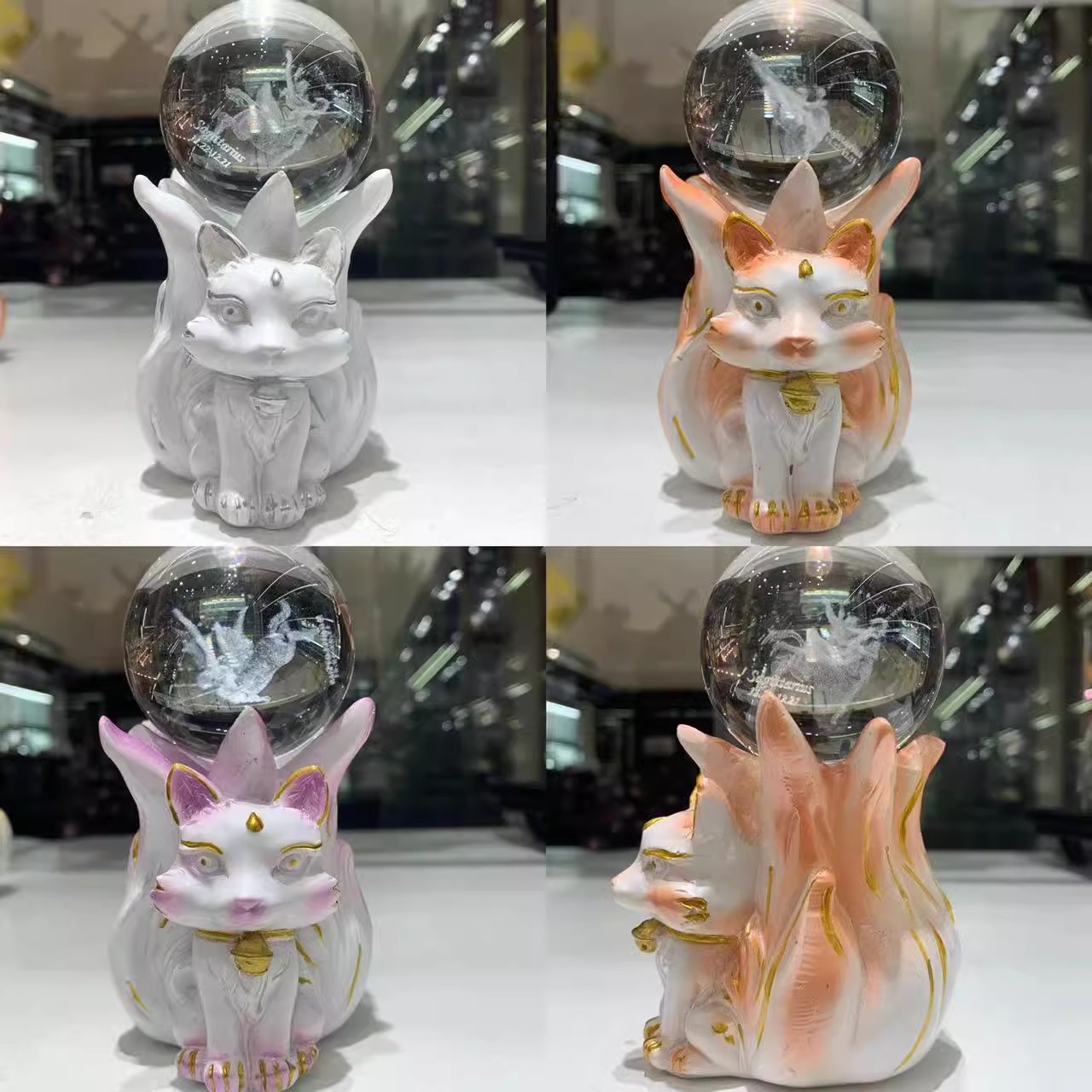 九尾のキツネのクリスタルボールディスプレイベース樹脂工芸品ベースボールホルダークリスタルボールベース装飾装飾品