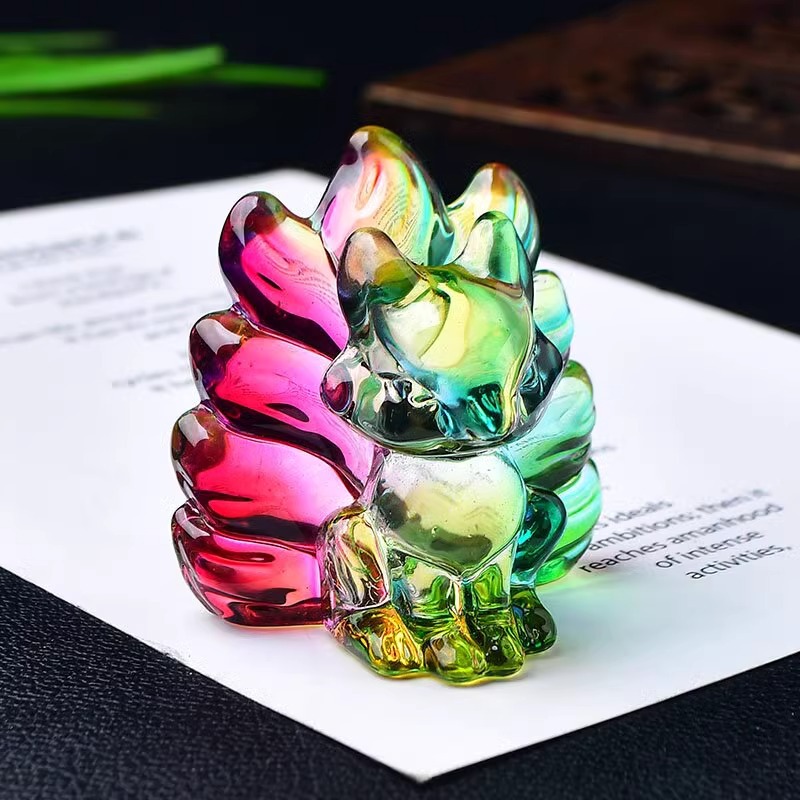 古代ガラスキツネ人形ニッチデザイン家の装飾ガラス九尾キツネの装飾品誕生日ギフト