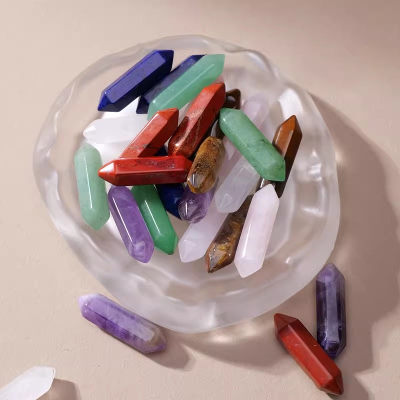 天然水晶原石双尖六角柱置物虎眼石粉水晶柱DIYペンダントアクセサリー