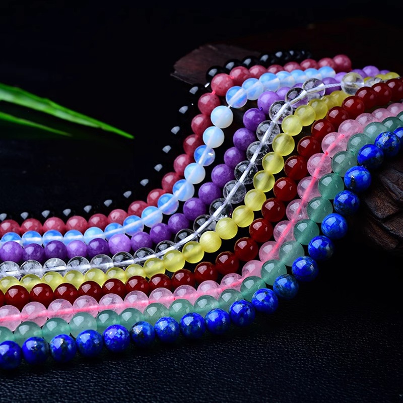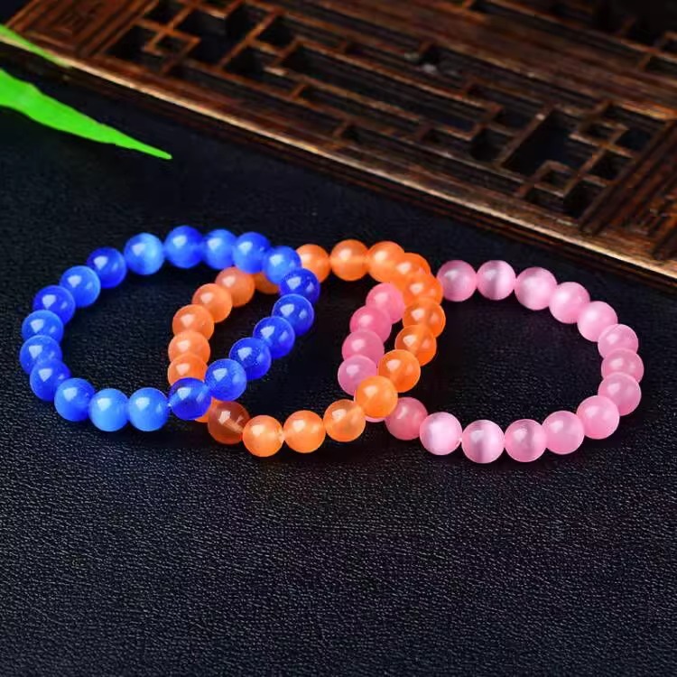7色の猫の目の石のブレスレットのカラーの玉は玉を回転して金を募集します。