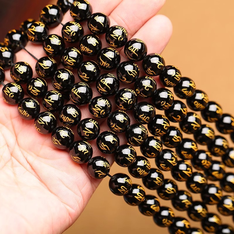天然黒曜石ホットスタンピング 6 文字マントラルースビーズ DIY 手織り干支ジュエリーアクセサリービーズ 7A