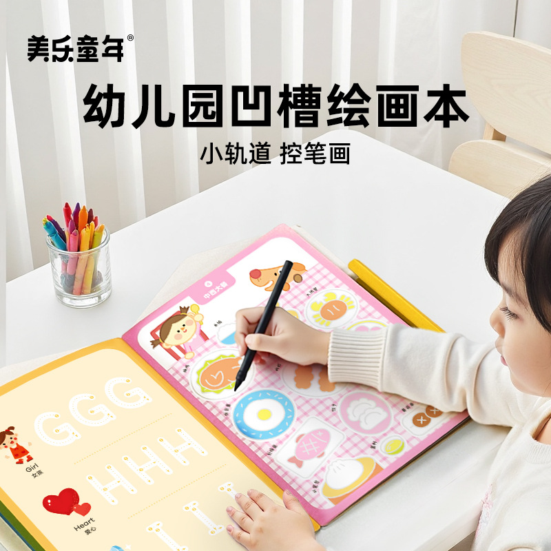 美楽の子供の頃の小さい軌道はペンを制御して溝を訓練して幼稚園の字を練習します。