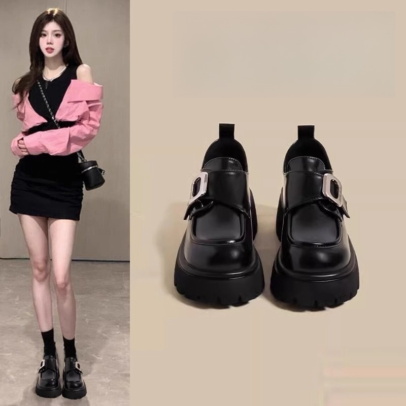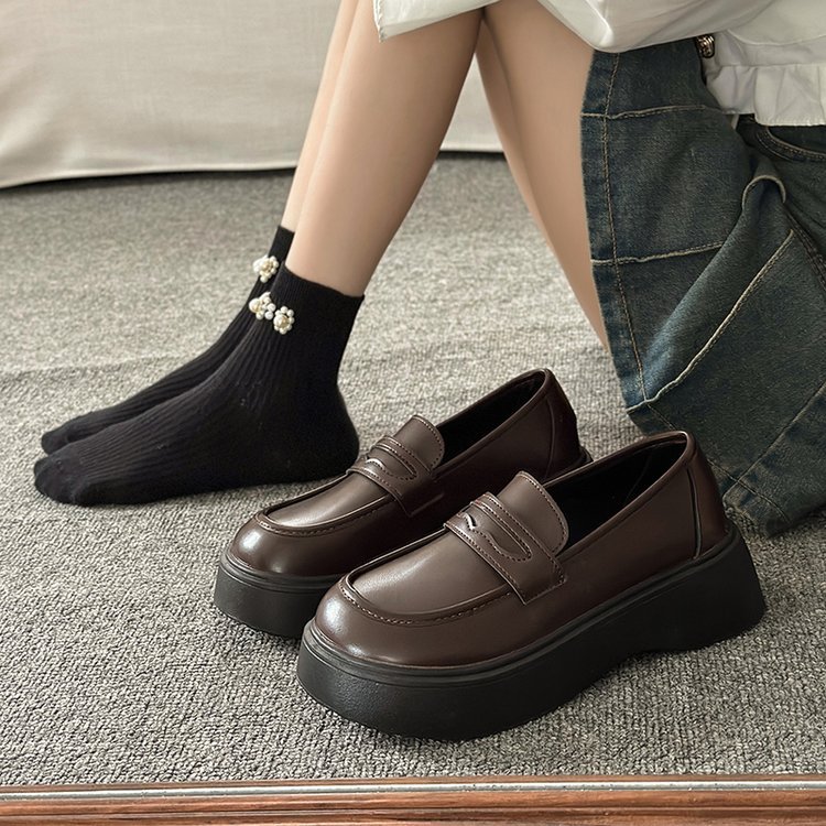 ローファー婦人靴 2025 春夏新作シングルシューズ小柄な人向け、英国風厚底革靴