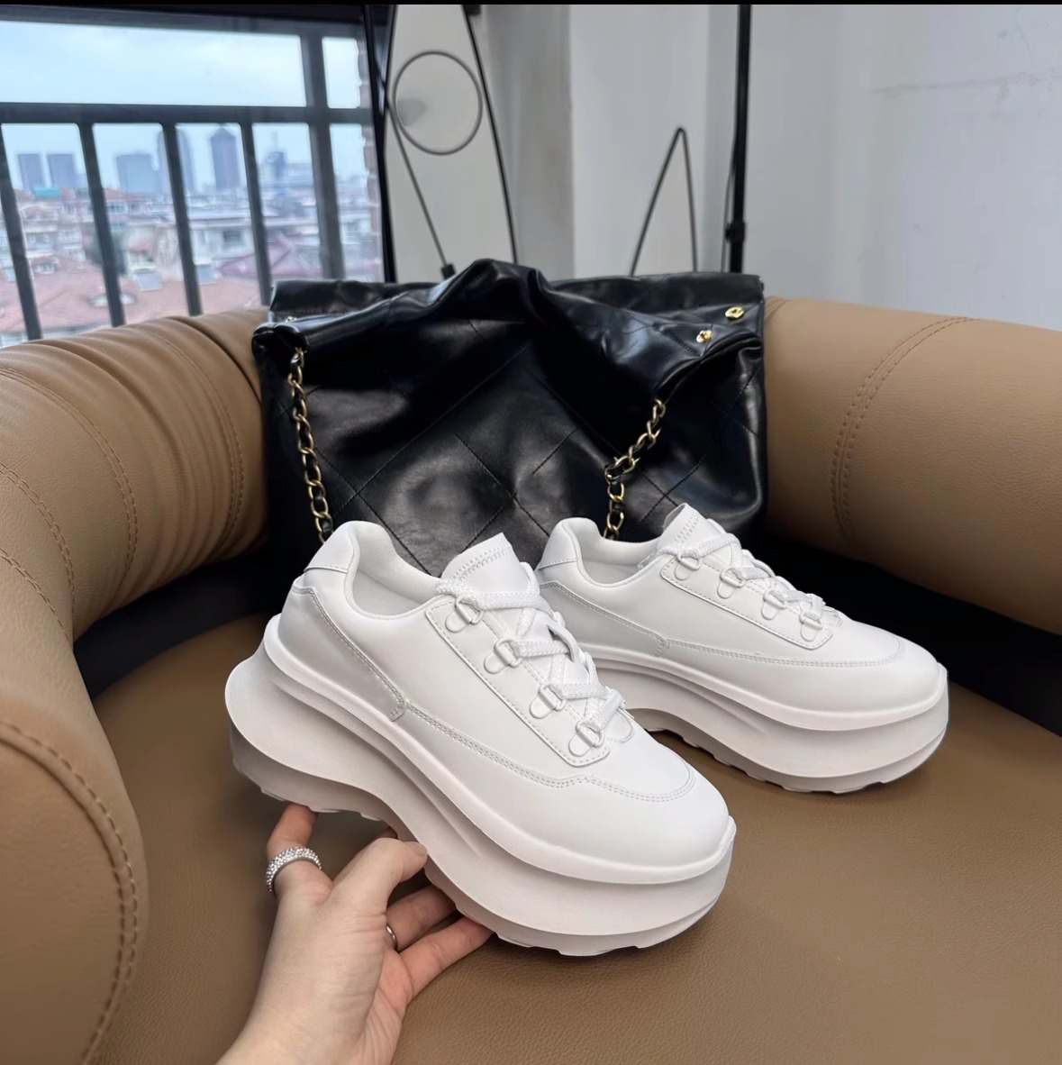 本革カジュアルダッドシューズ女性のための 2025 春の新高さ増加厚底スポーツランニングシューズ通気性のある滑り止めハイキングシューズ