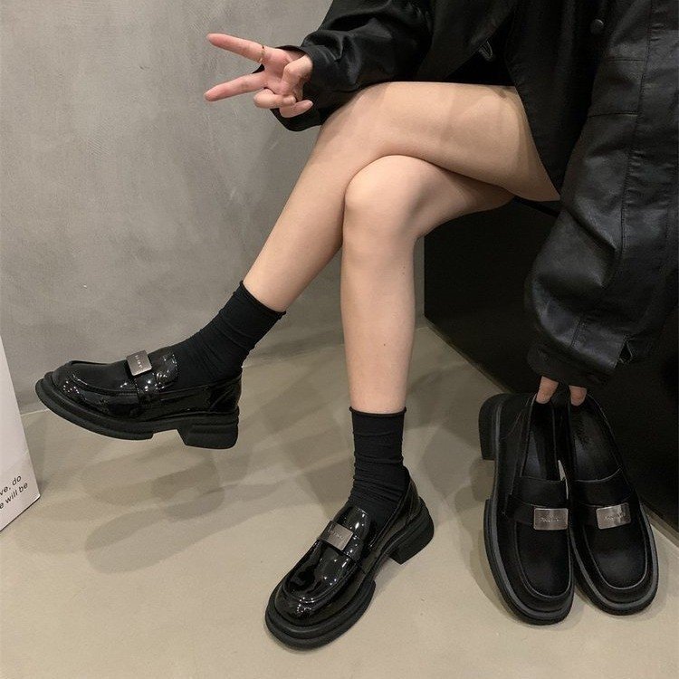 英倫風小革靴百合太と黒楽福靴秋冬底女靴高級感レトロ靴jk靴