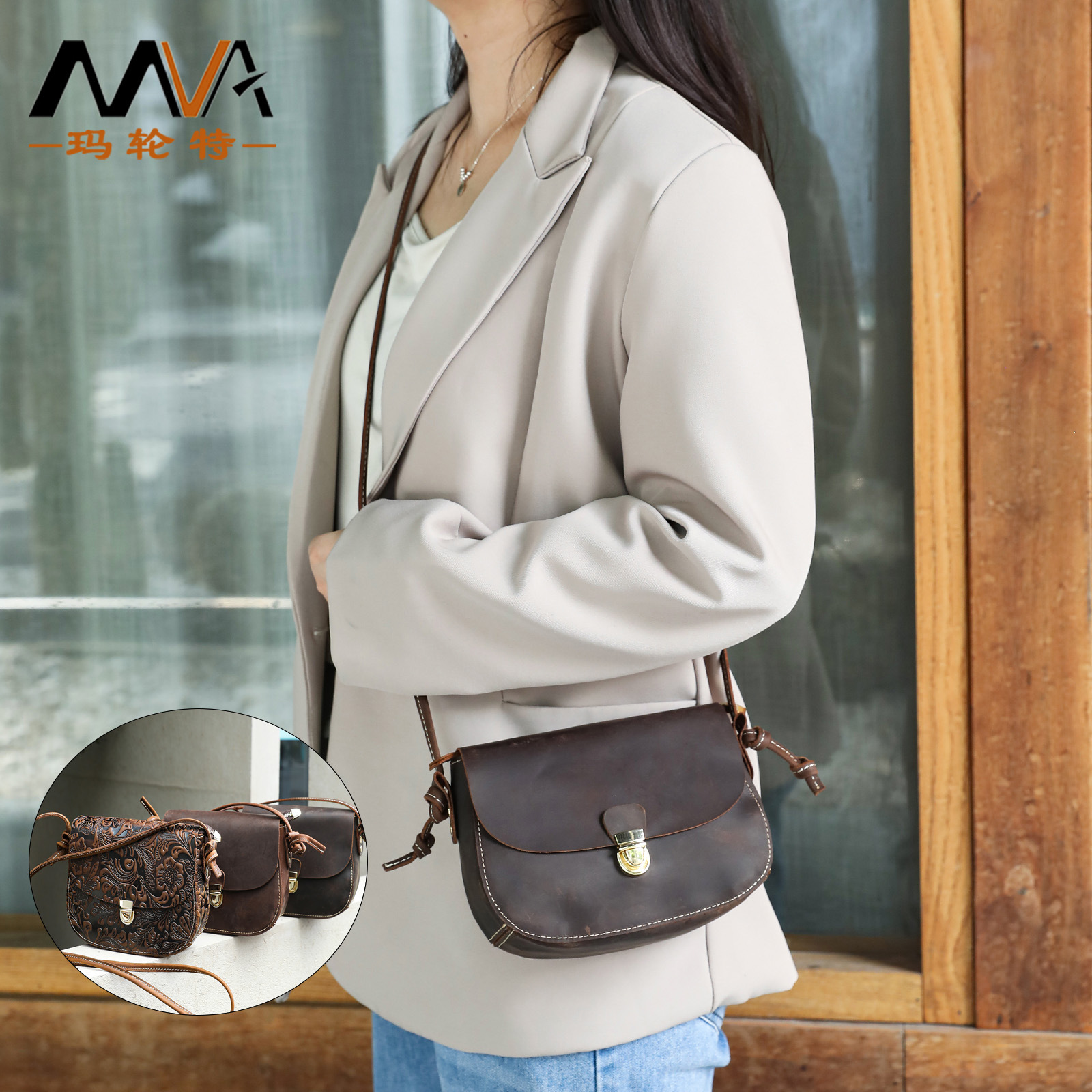 ヨーロッパとアメリカのレトロな手作りの第一層牛革ショルダーバッグ、女性用、シンプルなロック付きスモールバッグ、クロスボディ携帯電話バッグ、トレンディなバッグ