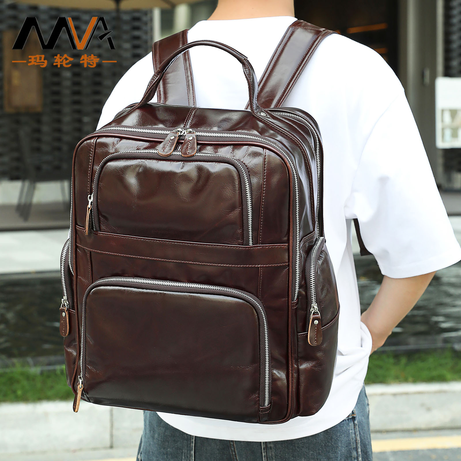 外国貿易新しい本革バックパックハイエンドオイルワックスレザーメンズビジネストラベルカジュアルバックパックコンピュータバッグ男性用