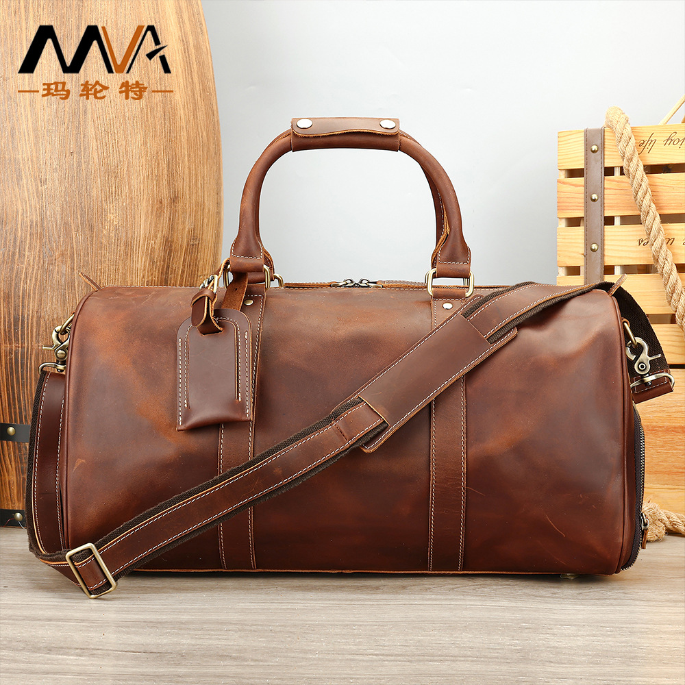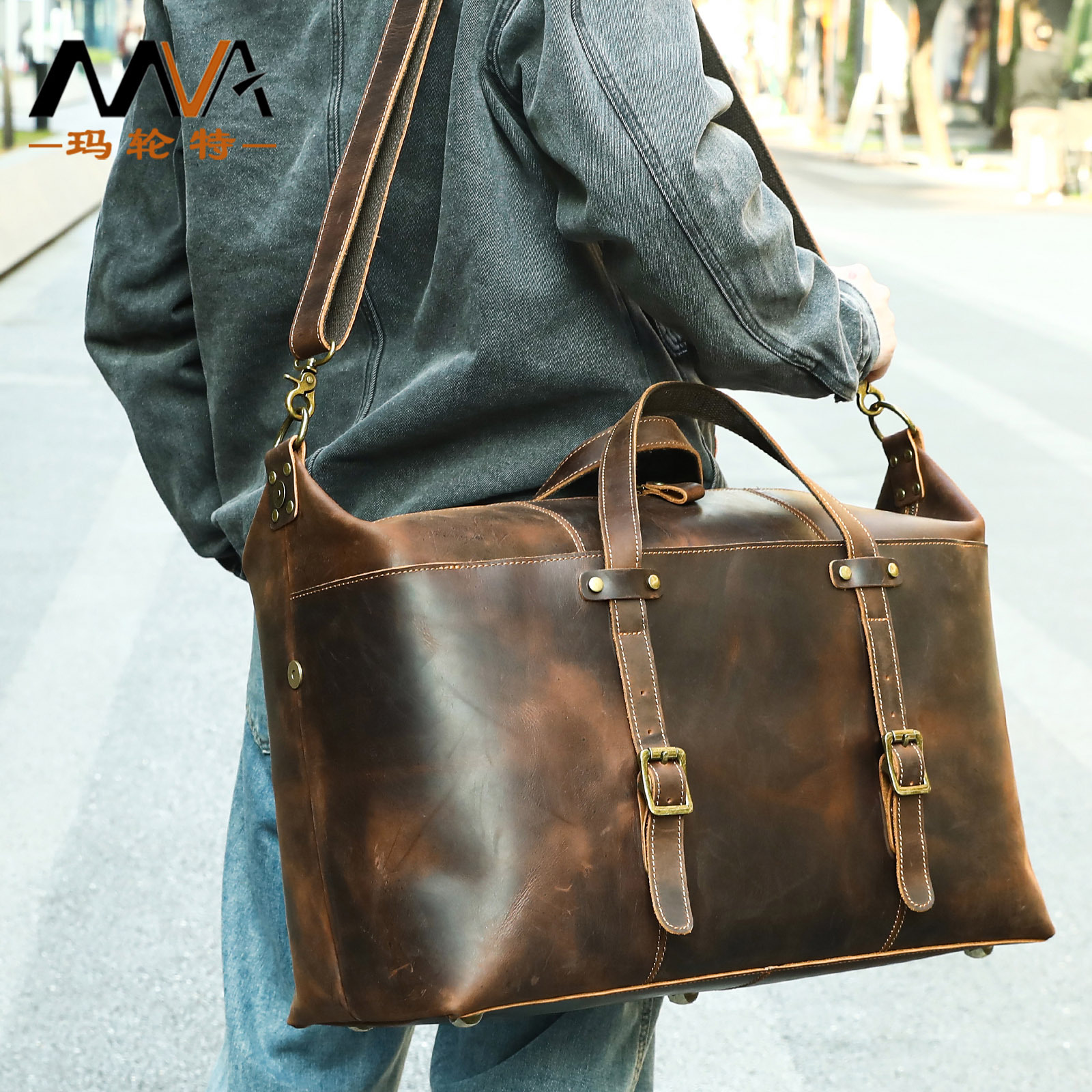 アマゾン本革大容量男性旅行カバンレトロ狂馬革荷物袋トップ層牛革男性ハンドバッグ