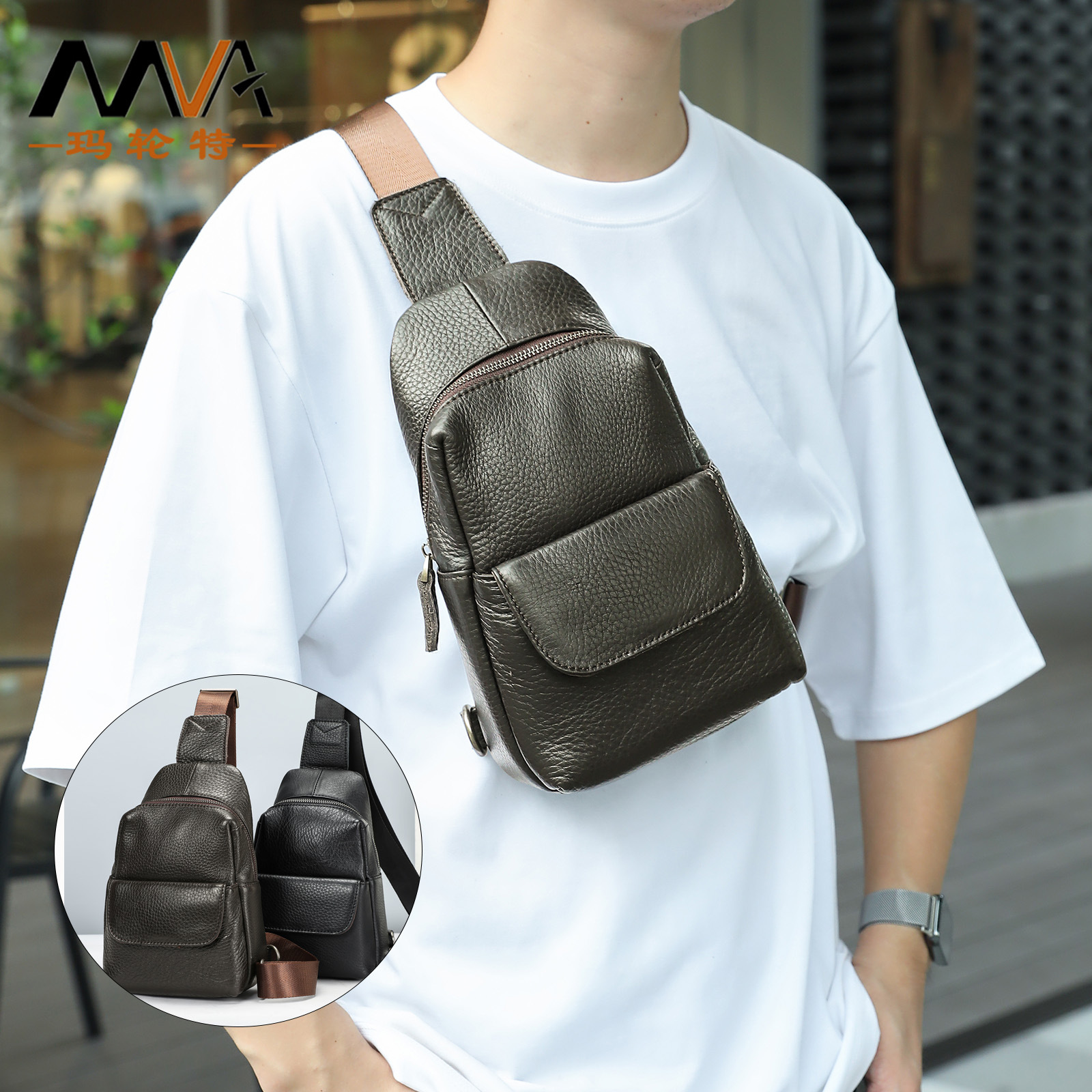 MVA ビジネス本革メンズバッグ第一層牛革ショルダーバッグクロスボーダーファッショントレンドポータブルクロスボディバッグ日本クロスボーダー