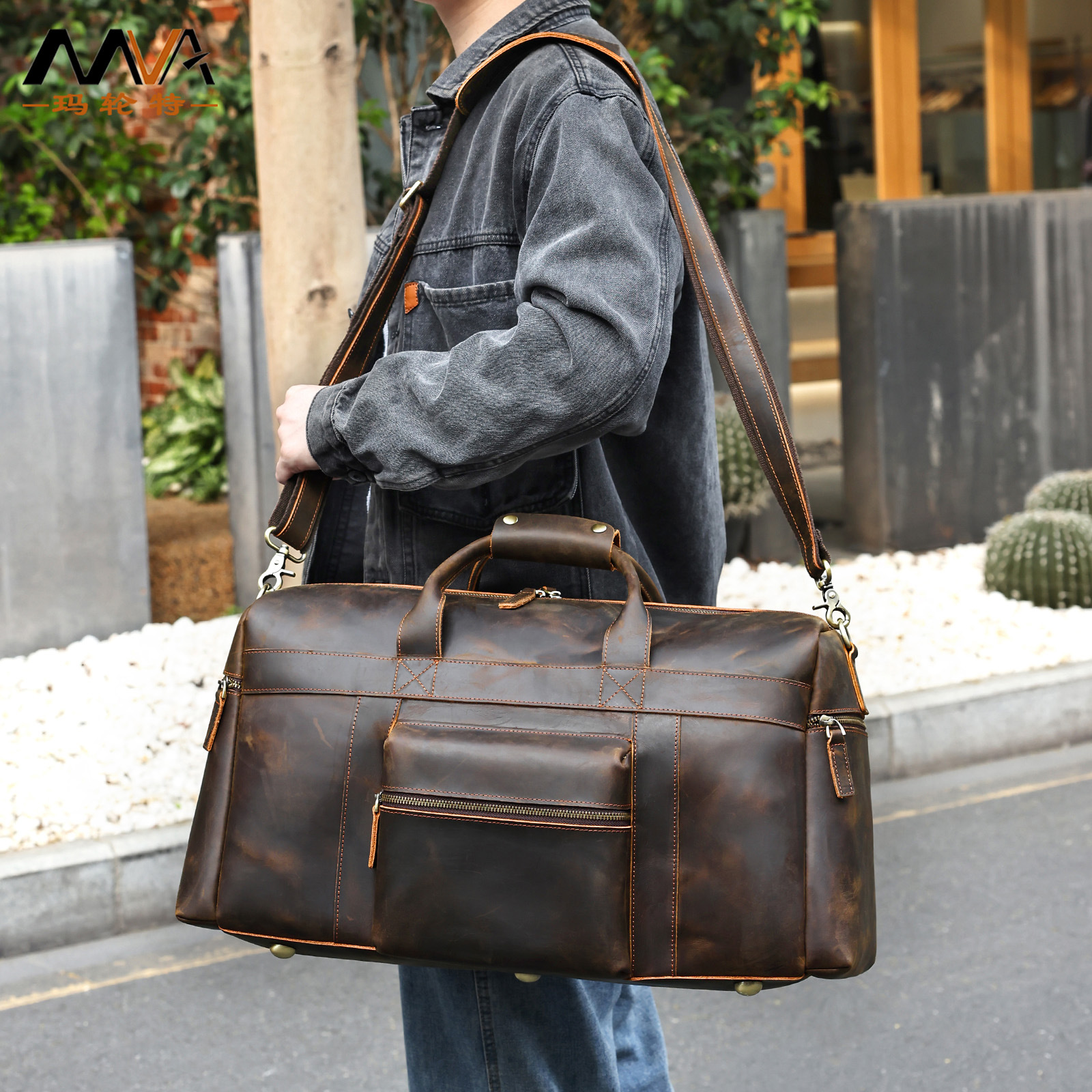 外国貿易クロスボーダー大容量狂馬皮旅行カバンレトロ本革荷物バッグトップ層牛革手提げ旅行バッグ男