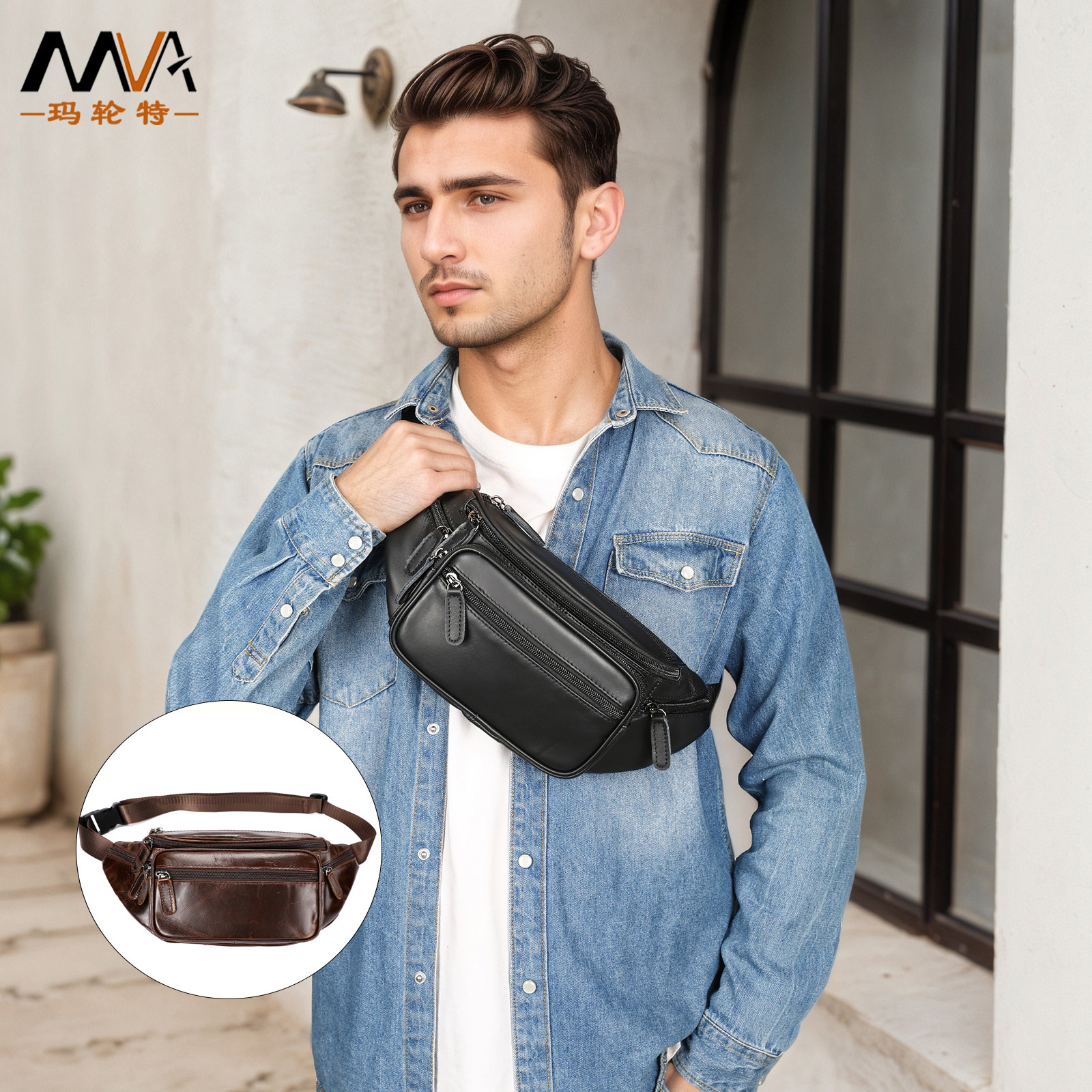 クロスボーダー牛革男性カバン男性携帯電話ウエストバッグ本革斜めショルダーバッグ多機能スポーツレジャー斜め掛け胸カバン卸売り