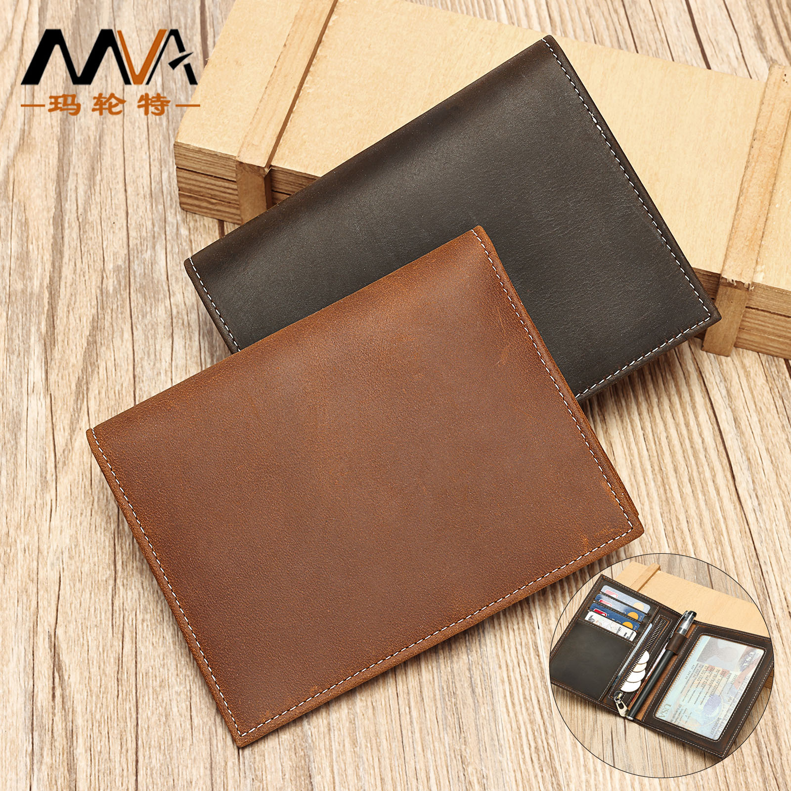 新型レトロ狂馬皮財布シンプルトップ牛革男性財布多機能財布高級感カードバッグ男性