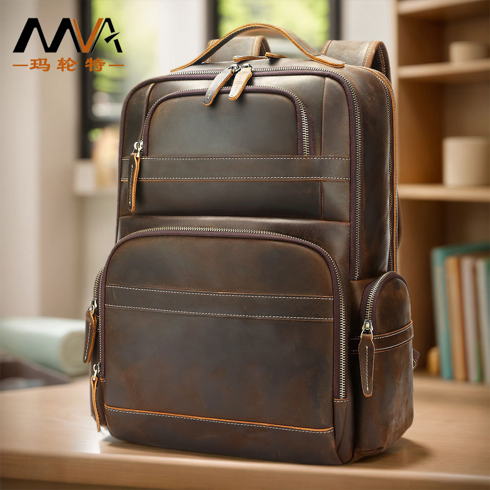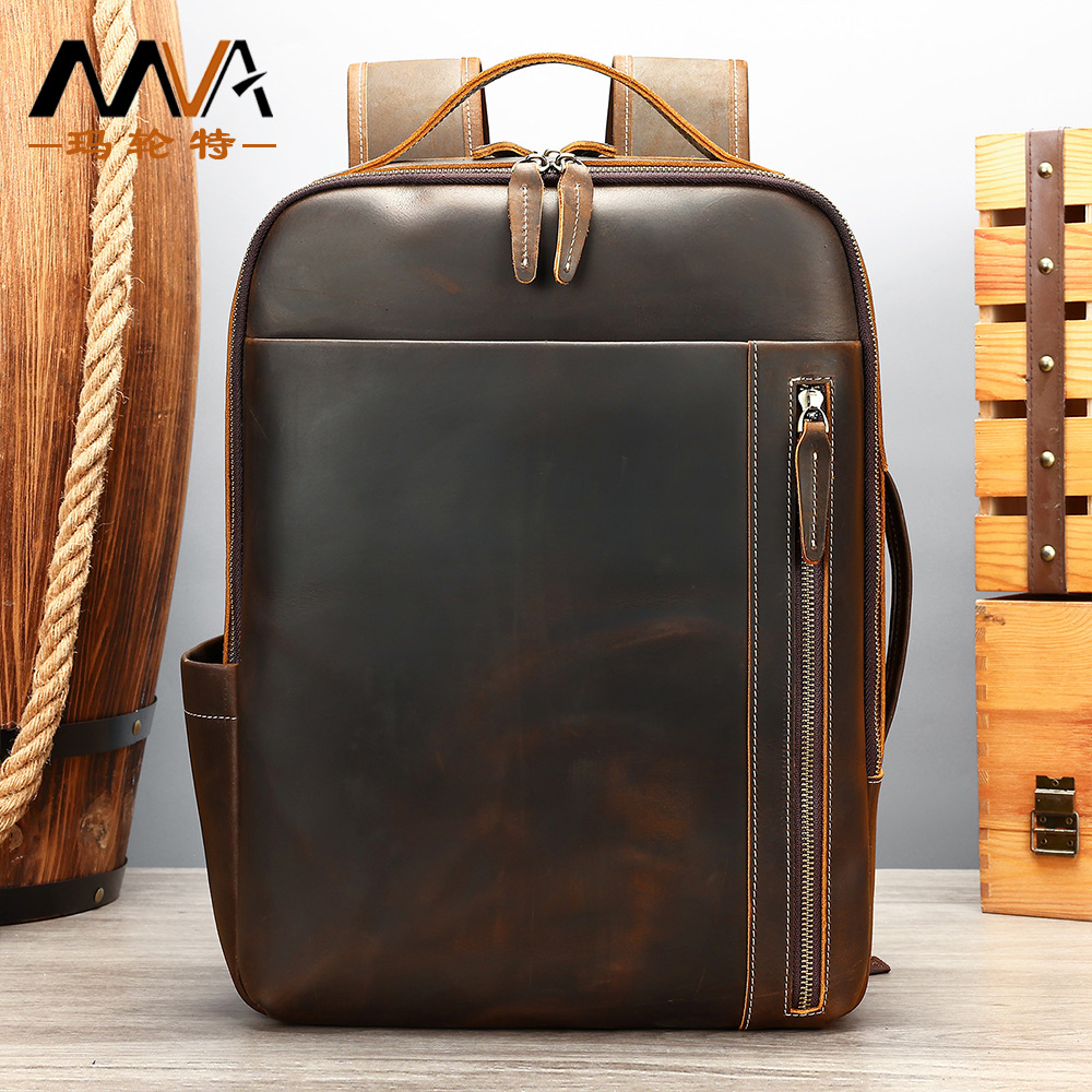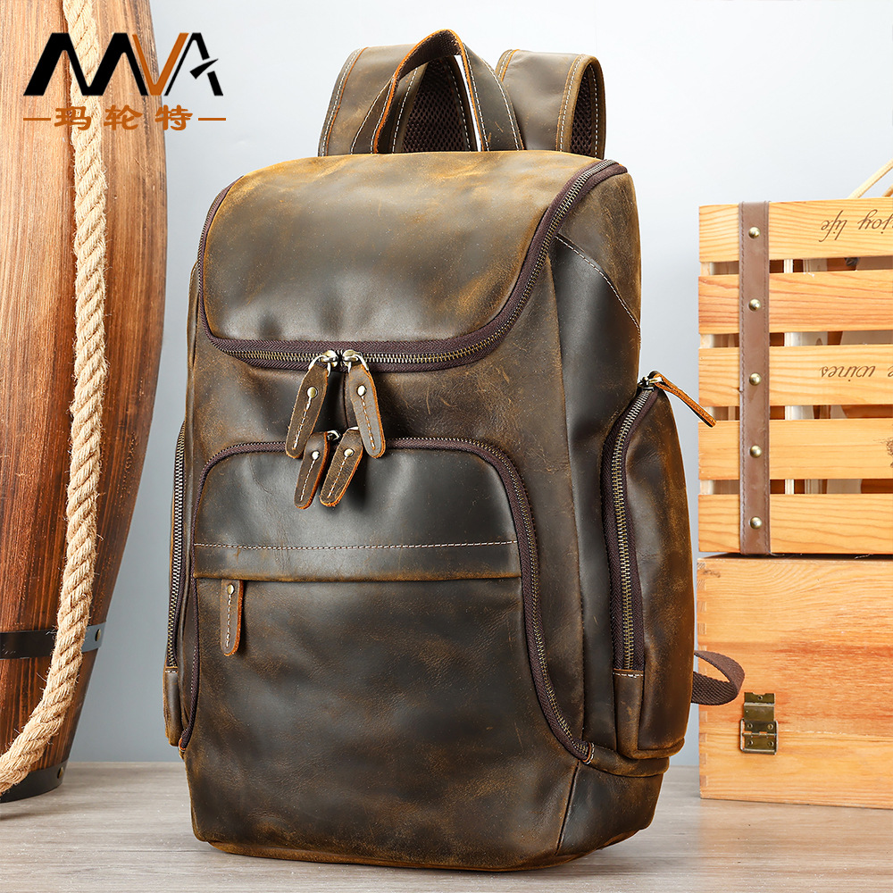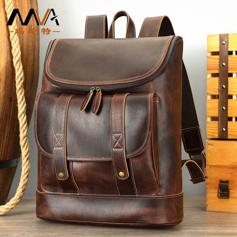 新型狂馬皮男性ランドセルレトロ本革カジュアル大容量リュックサックビジネスノートパソコンカバン男