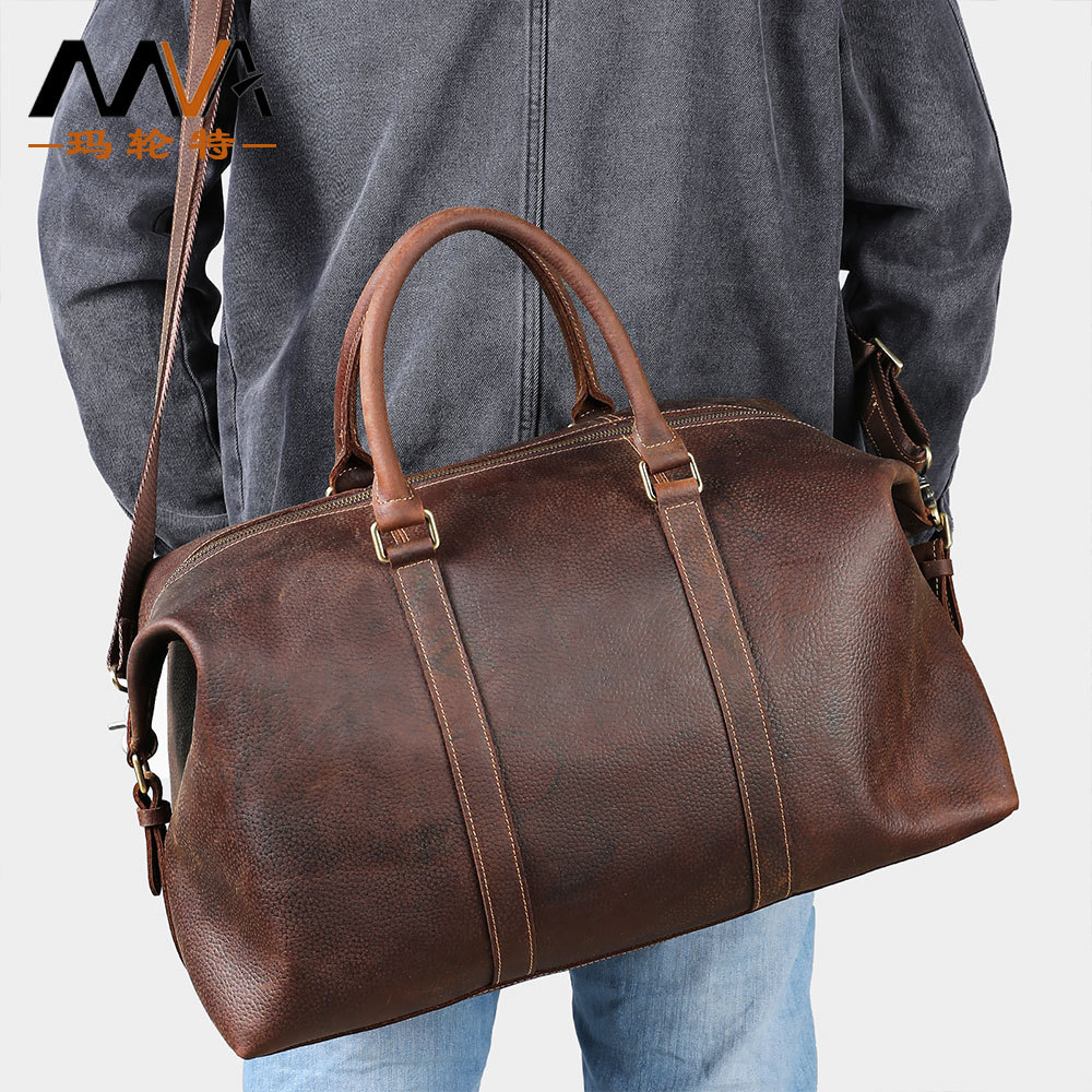 本革旅行カバンレトロ気違いバッグ高級感メンズ旅行ショルダーバッグ斜め掛け旅行カバンオシャレ