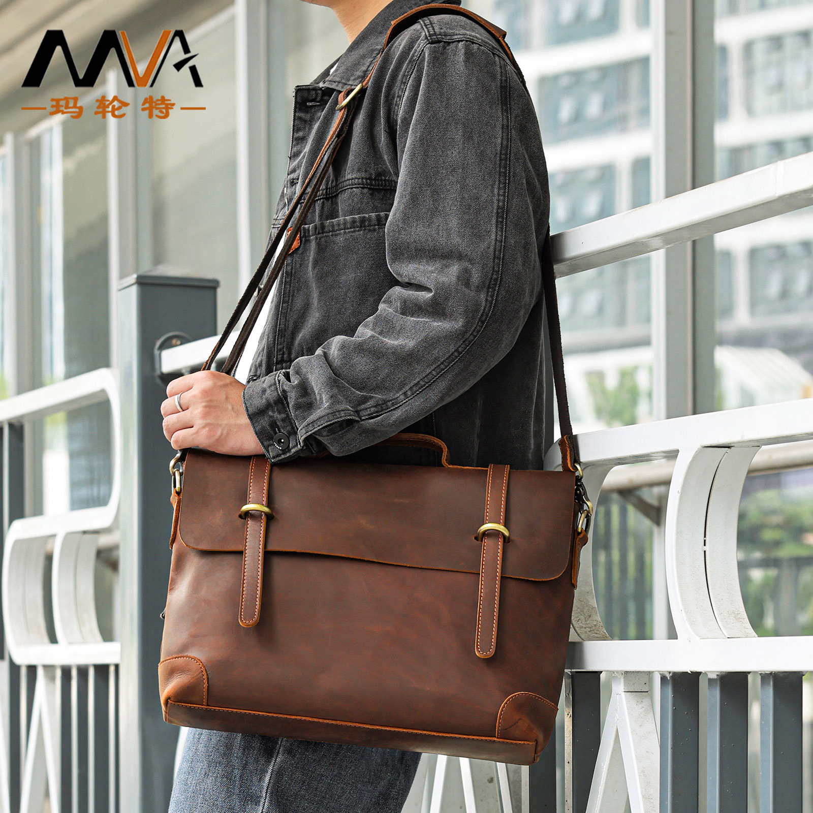 馬輪特男性手提げ荷物袋高級感本革斜め掛けバッグ狂馬皮レトロ出張旅行カバン