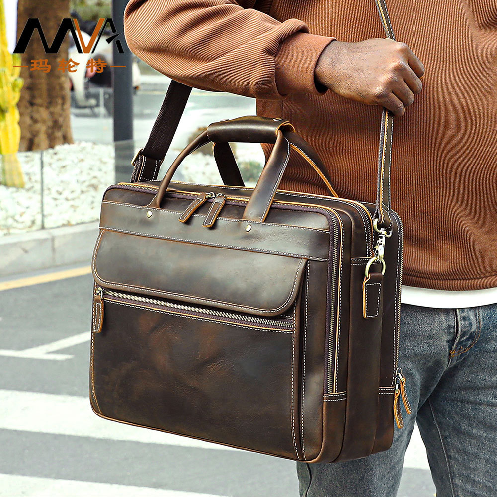 狂马皮メンズハンドバッグビジネス旅行ブリーフケース高级感レトロ大容量牛革男性用パソコンバッグ