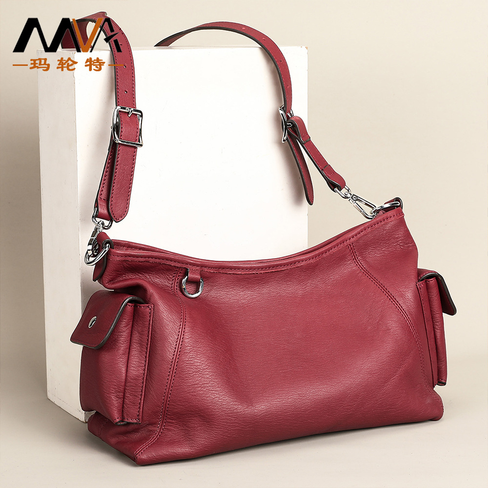 本革レディースショルダーバッグ高級感バッグトップ層牛革百合シングルショルダーバッグ新作小衆餃子バッグ