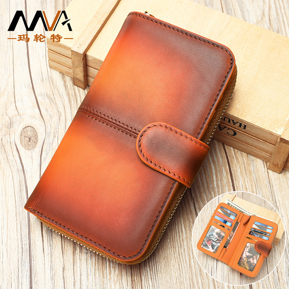 レトロトップ牛革メンズ财布RFID盗难防止ブラシ本革ジッパーゼロ财布マルチカードビット革カードバッグ男