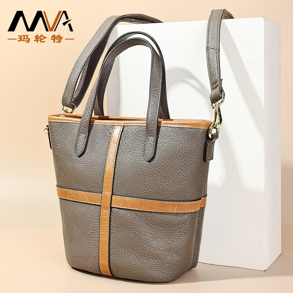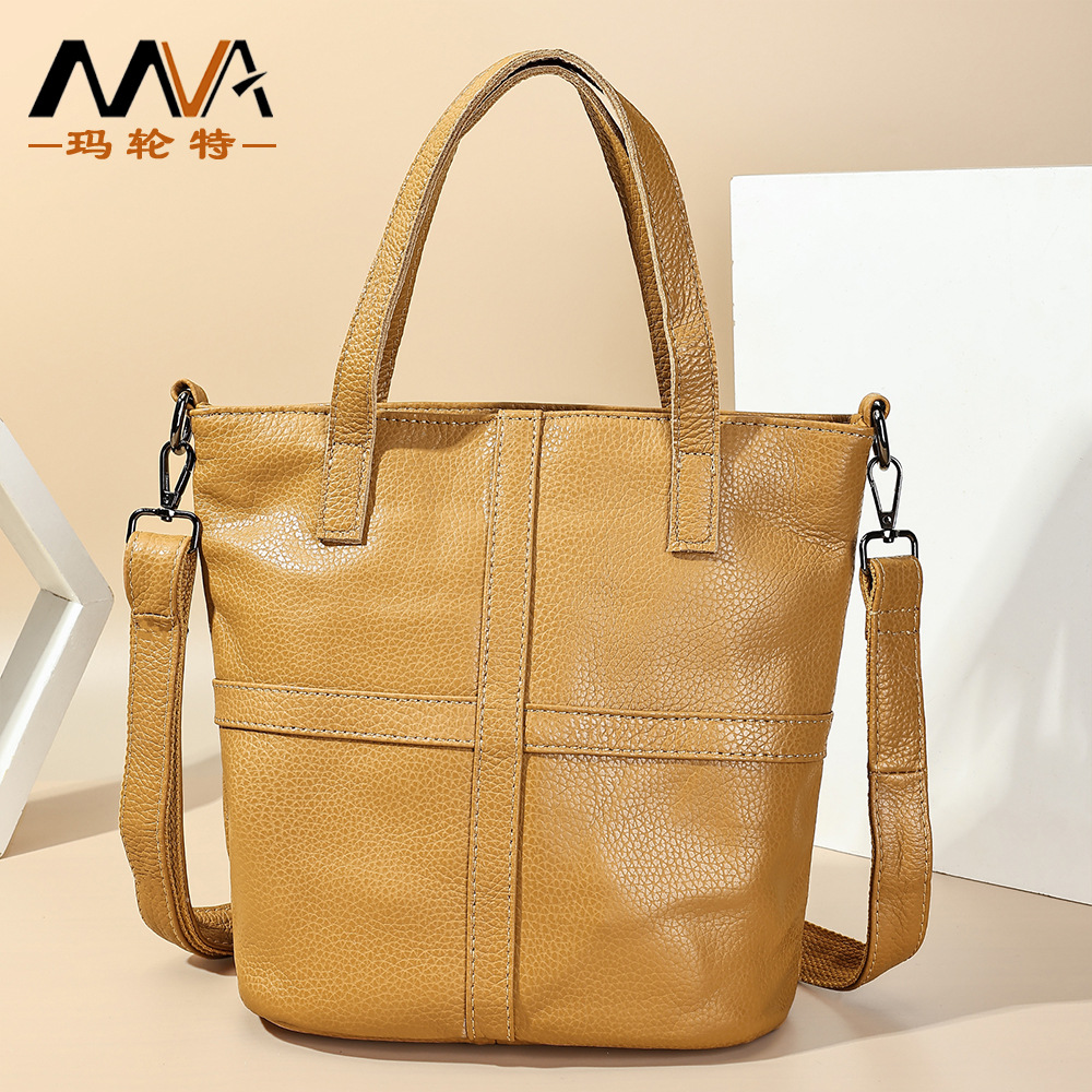 瑪輪特の新型百合韓国版本革女性カバンのトップ層牛革大容量バケツバッグ通勤女性用ショルダーバッグ