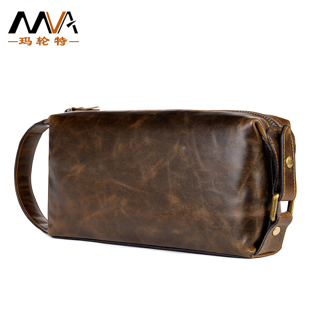 レトロなトップ層牛革ビジネスバッグ男性高級感真皮出張大容量アウトドア洗面バッグ男性モデル