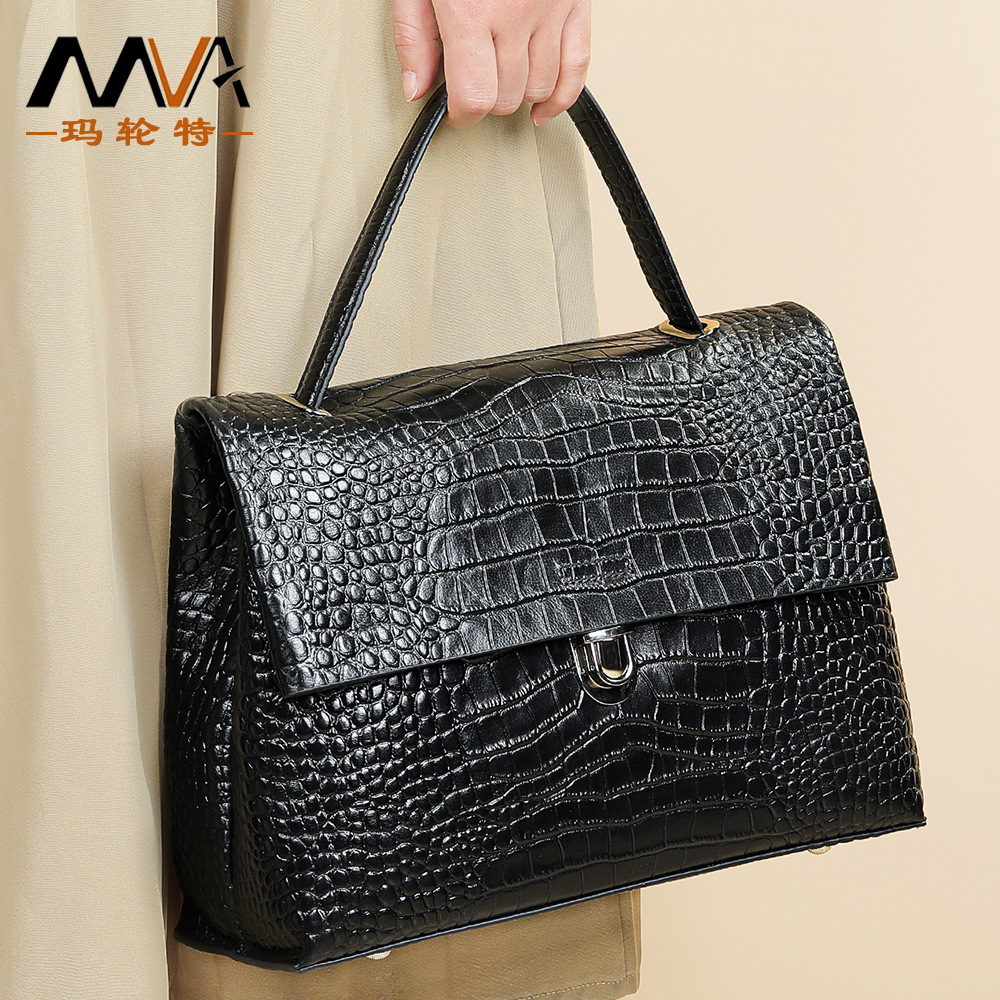 新品ビジネスレディース本革ショルダーバッグファッションワニ柄レディースハンドバッグ大容量牛革斜め掛けショルダーバッグレディース