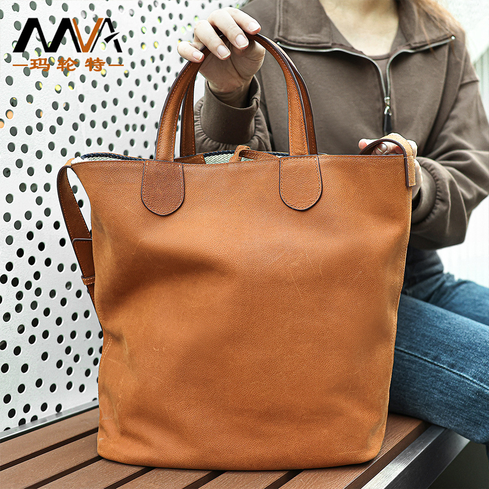 瑪輪特欧米レトロレディース本革ハンドバッグトップ層牛革大容量通勤バッグシンプル斜め掛けショルダーバッグ女性