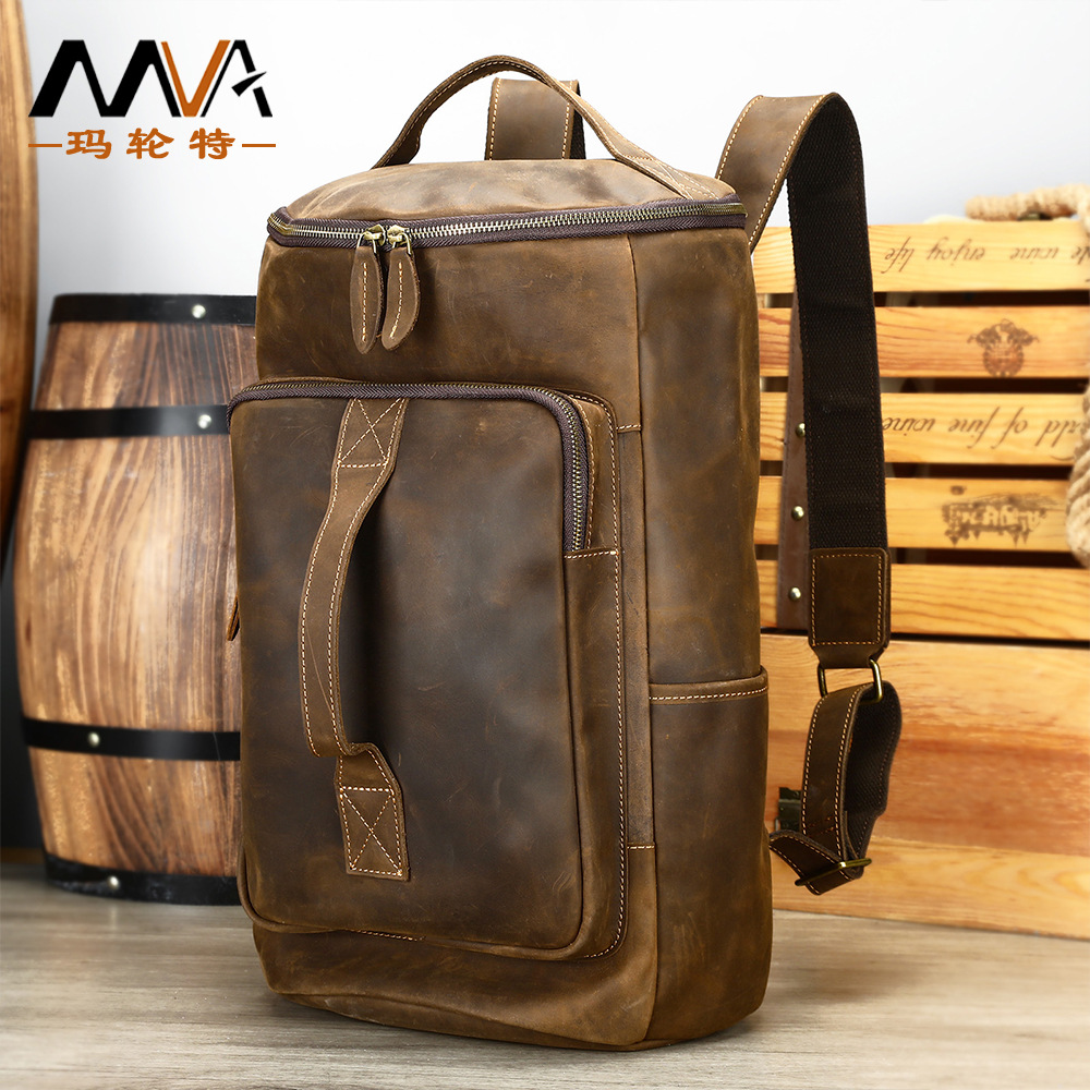 男性用大容量アウトドアリュックサックレトロ本牛革多機能男性用カバン