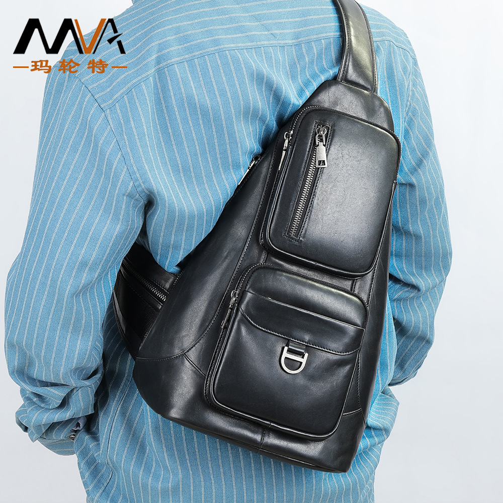 レトロ真皮多機能男性胸包頭層牛革カジュアル男性用ショルダーバッグ大容量耐久性斜め掛けバッグ