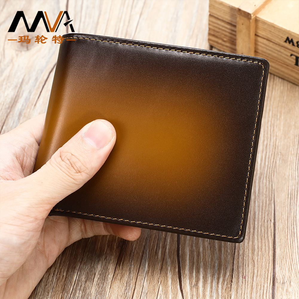 クロスボーダーレトロ本革財布メンズ小銭入れRFID盗難防止カードパックメンズマルチカードホルダーショートタイプ三つ折り財布