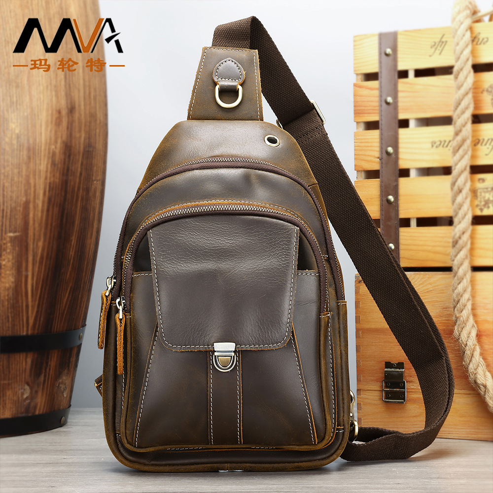 レトロ狂馬皮男性胸バッグ旅行出張多機能バックパック