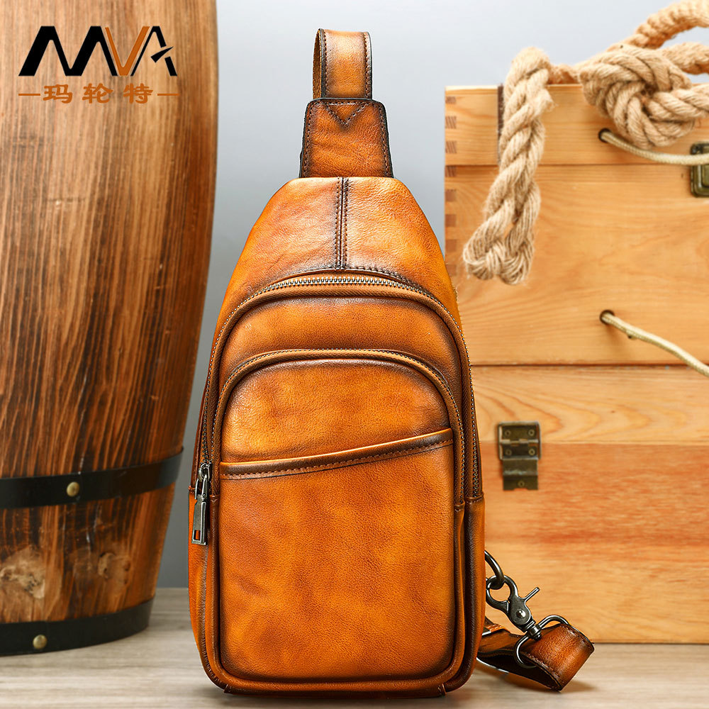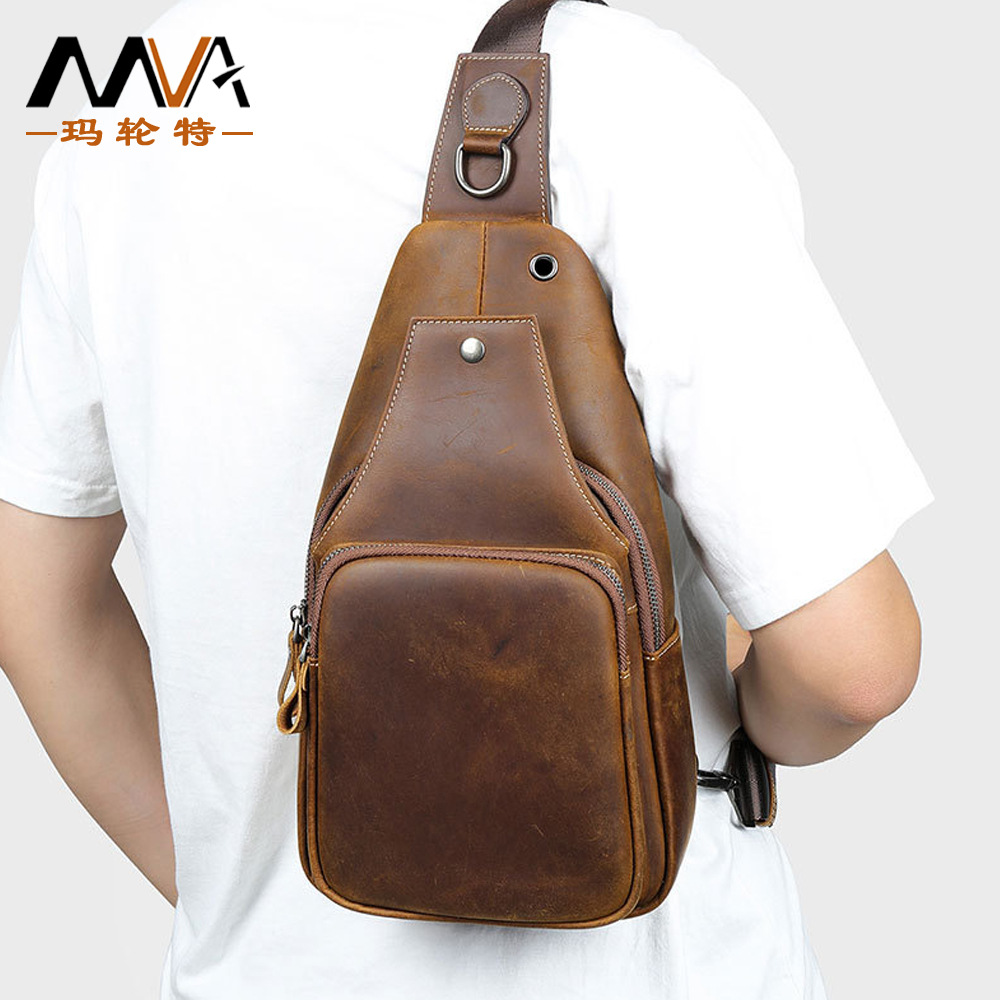 MVA本革メンズチェストバッグ高級感トップ層牛革シングルショルダー斜め掛けショルダーバッグシンプルな男性用胸前包み卸売り