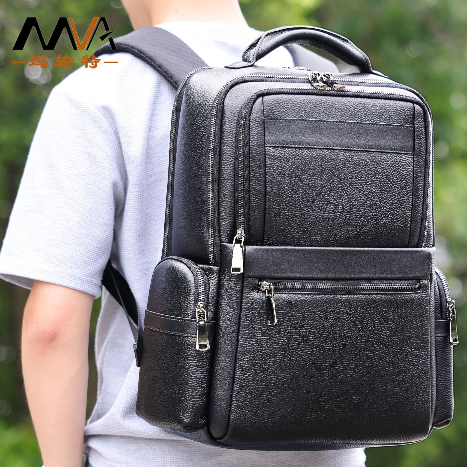 トップ層牛革新ビジネスパソコンリュックサック多ポケット大容量旅行リュックサック16インチパソコンリュックサック