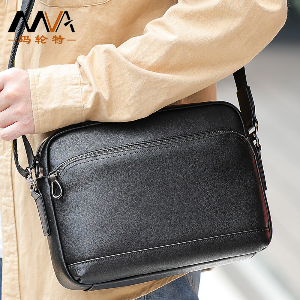 新型メンズカジュアル本革ショルダーバッグ韓国版ファッション高級感男性モデル