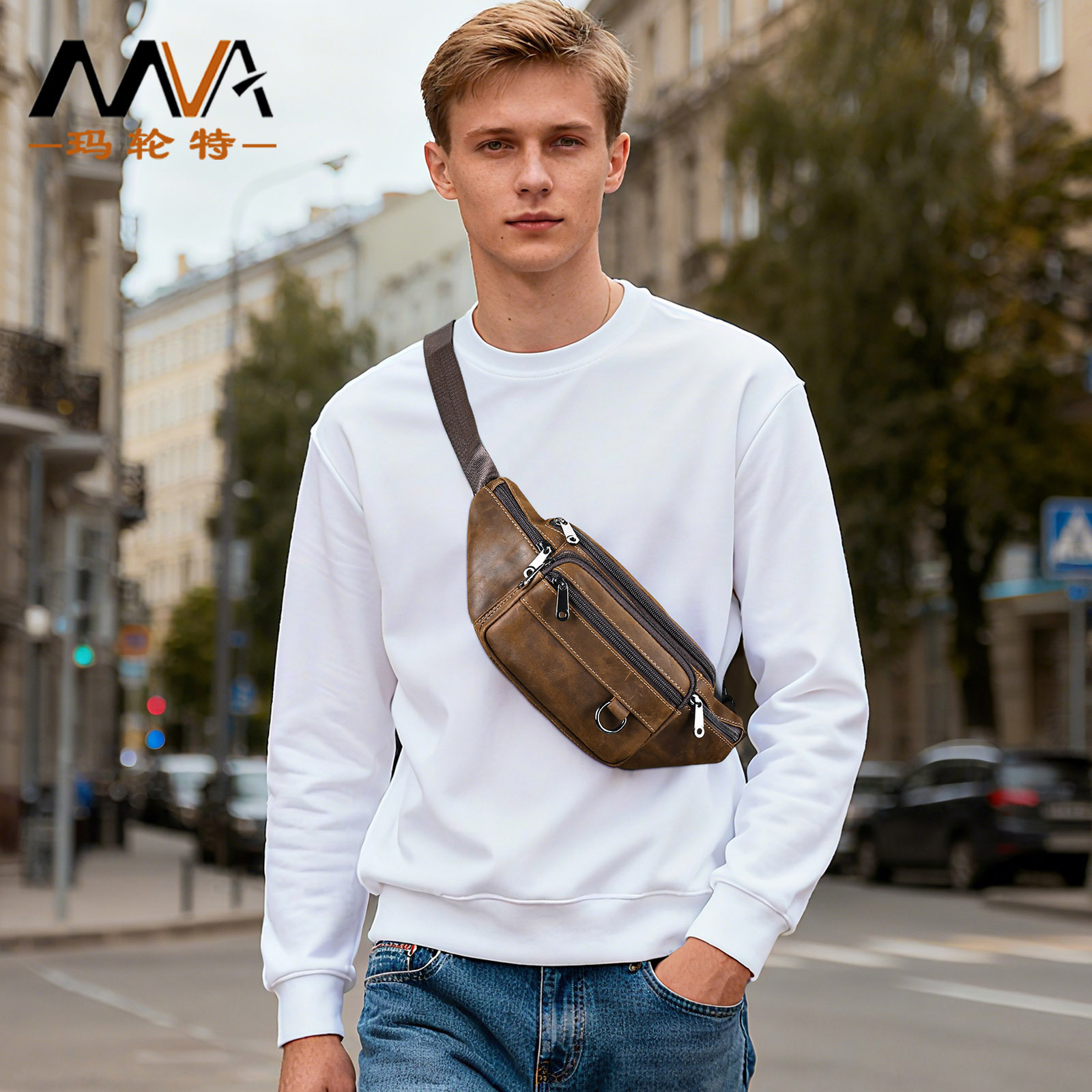 トップ層牛革シンプルな胸バッグ男性本革斜めショルダーバッグカジュアルビジネス高級感シングルショルダーバッグ