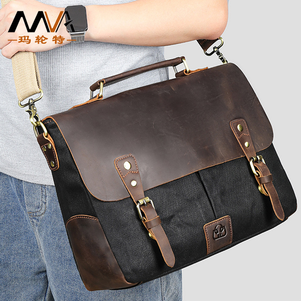 本革ショルダーバッグ男性斜め掛けブリーフケース大容量英倫レトロファッション狂った牛革ズックコンピュータハンドバッグ