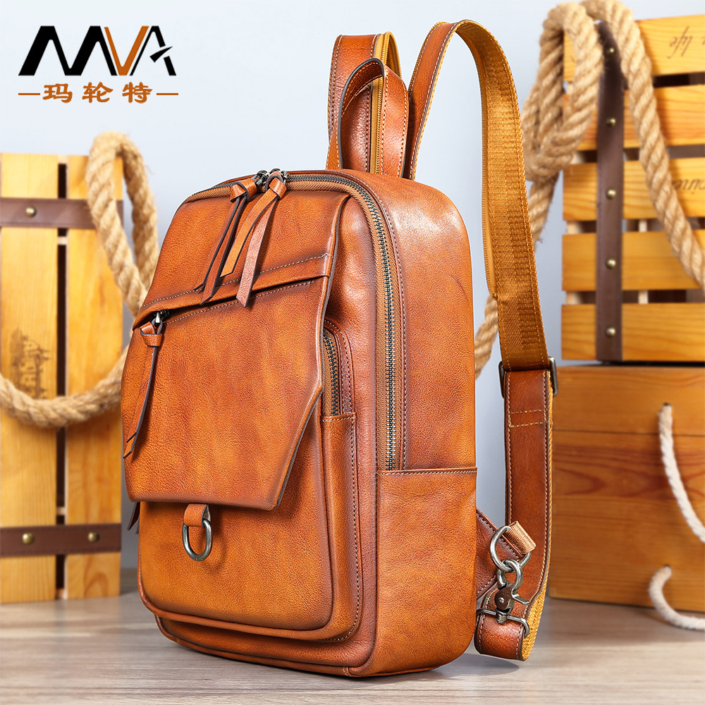 本革チェストバッグメンズ高級感トップ層牛革擦り色レトロ多機能リュックサックリュックサック男性