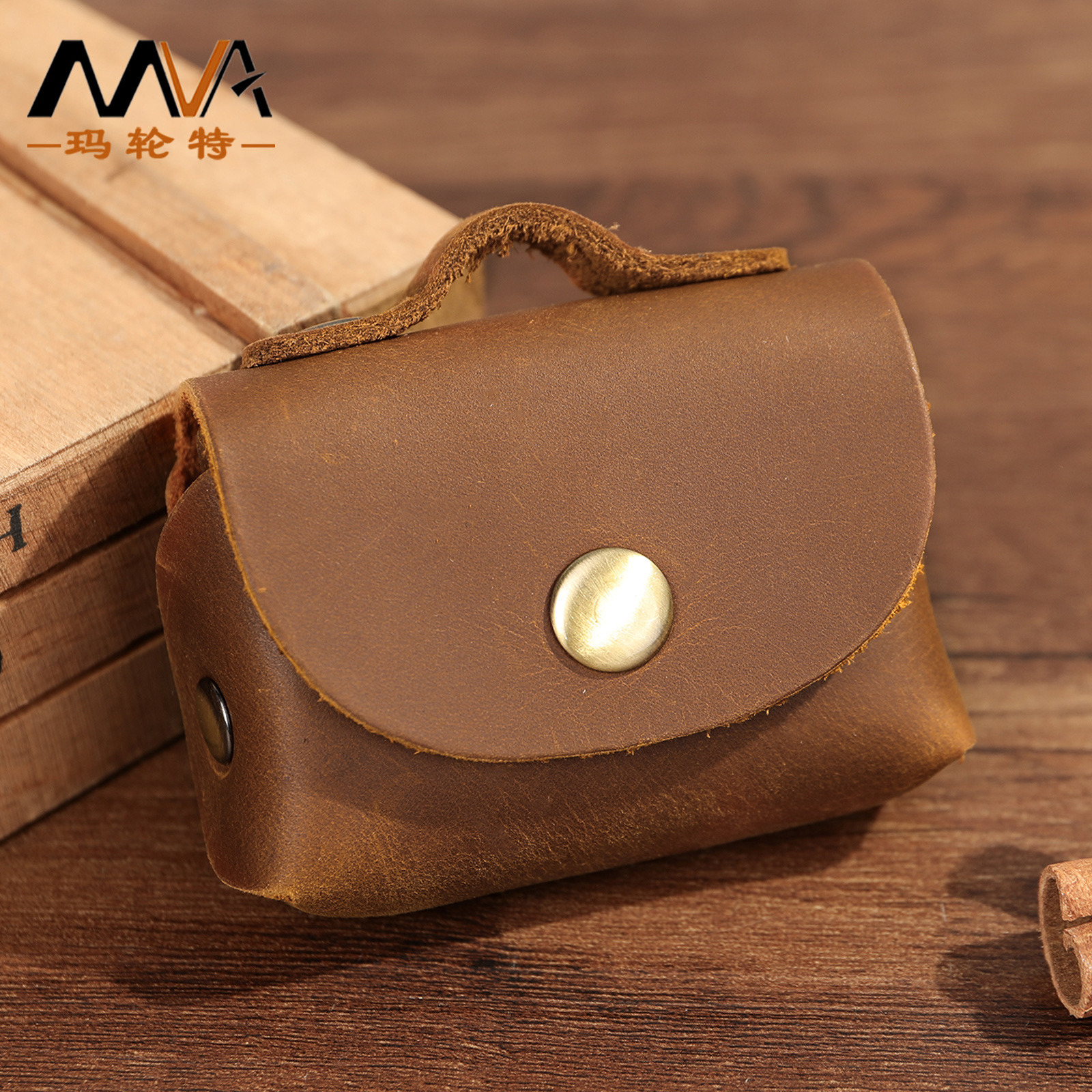 狂马皮小銭入れ本革キーケース高级感男レトロ手作りイヤホンバッグコンパクト収纳バッグコインバッグ