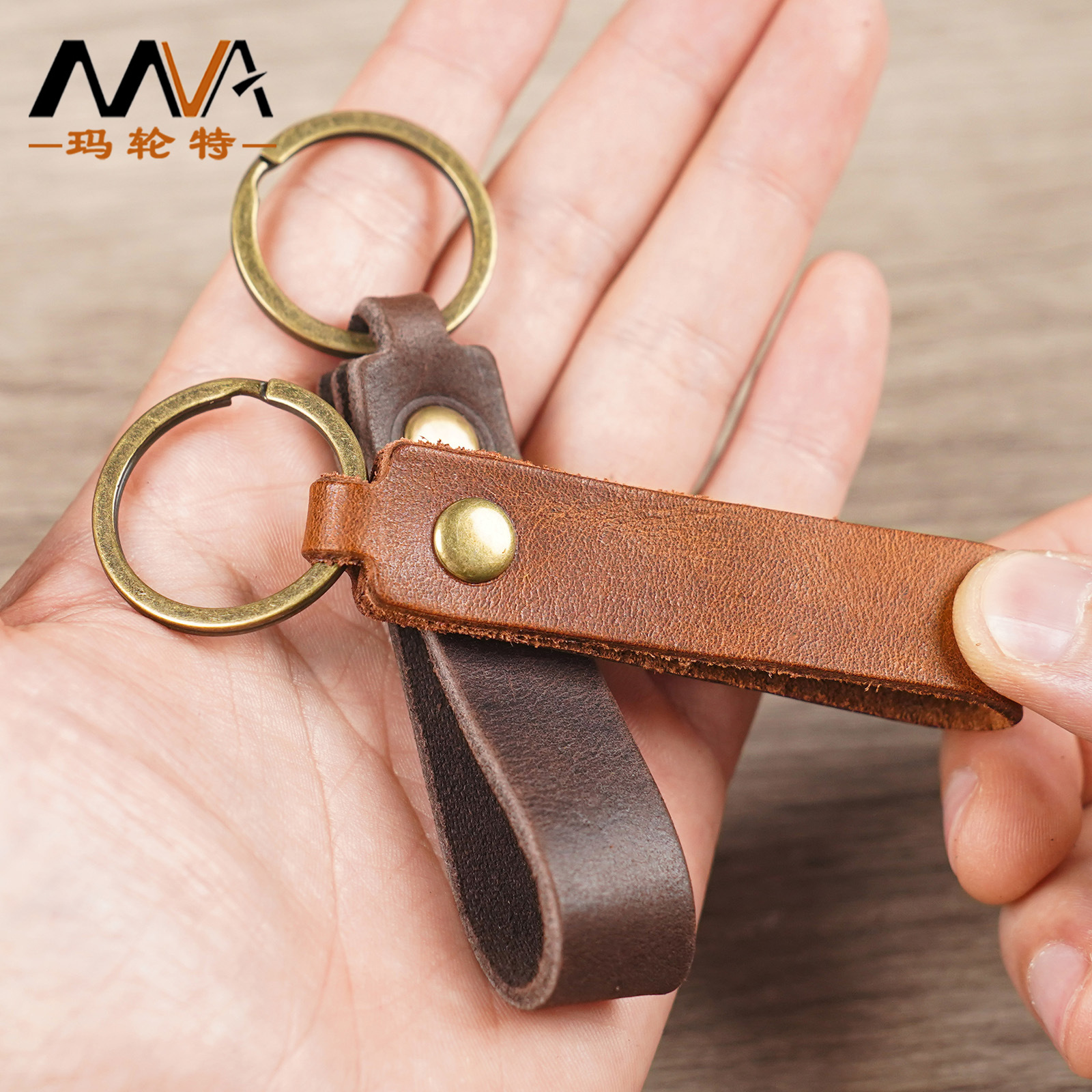 高級シンプルな自動車キーホルダー小売色ランダム一元プレゼントレトロ牛革個性本革キーホルダー