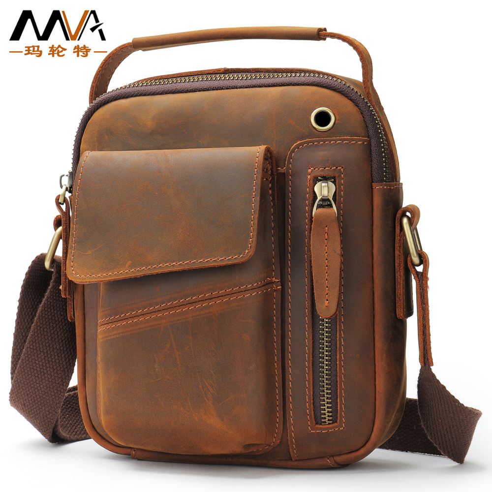 新型の狂馬の皮の男性のカバンの本革の縦型の男性のショルダーバッグの携帯電話のカバンのイヤホンの穴の小さいタイプの男性の斜め掛けの四角なカバン
