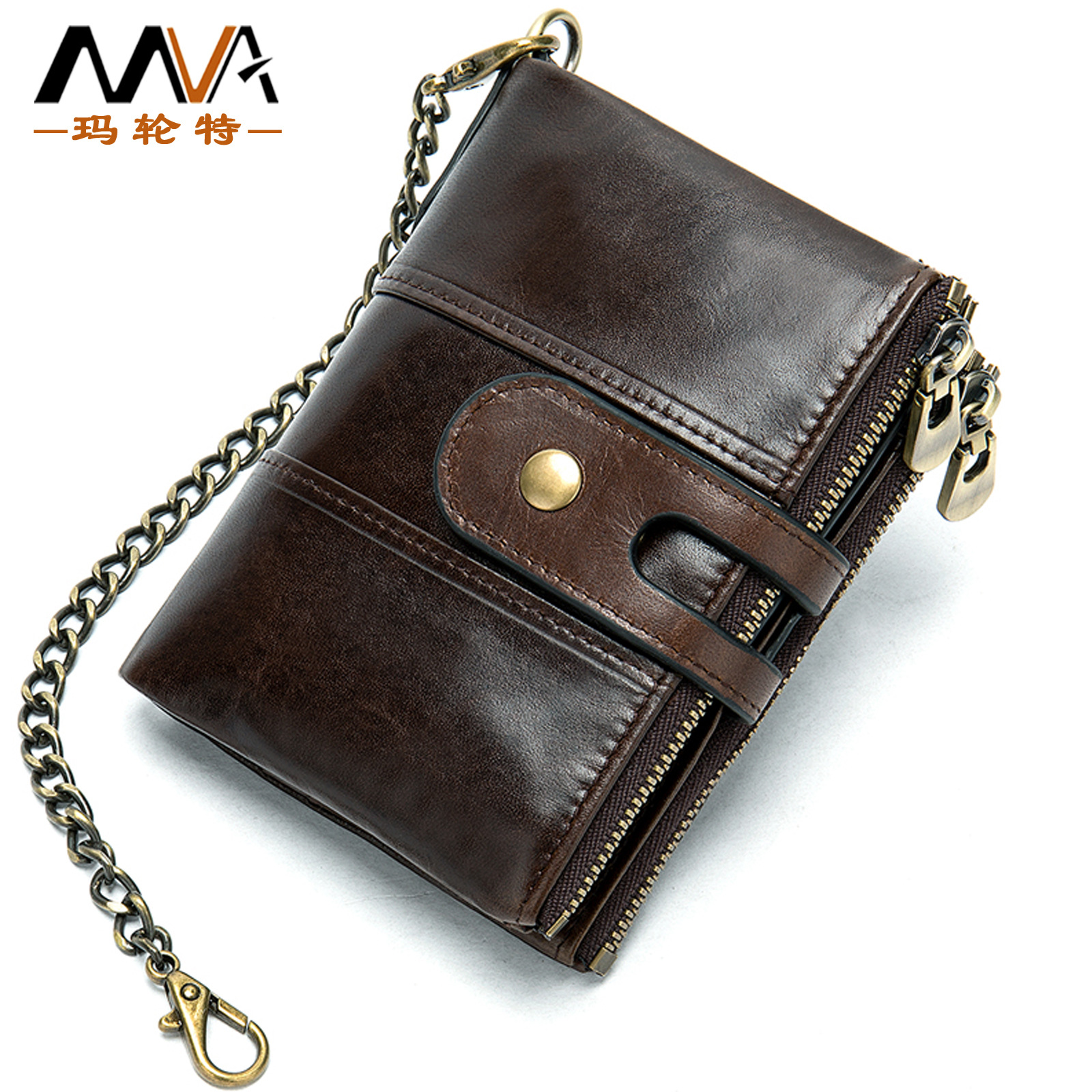 欧米国境を越えたダブルジッパーのタワーボタン本革男性財布の短いカード位置rfid盗難防止磁気牛革財布