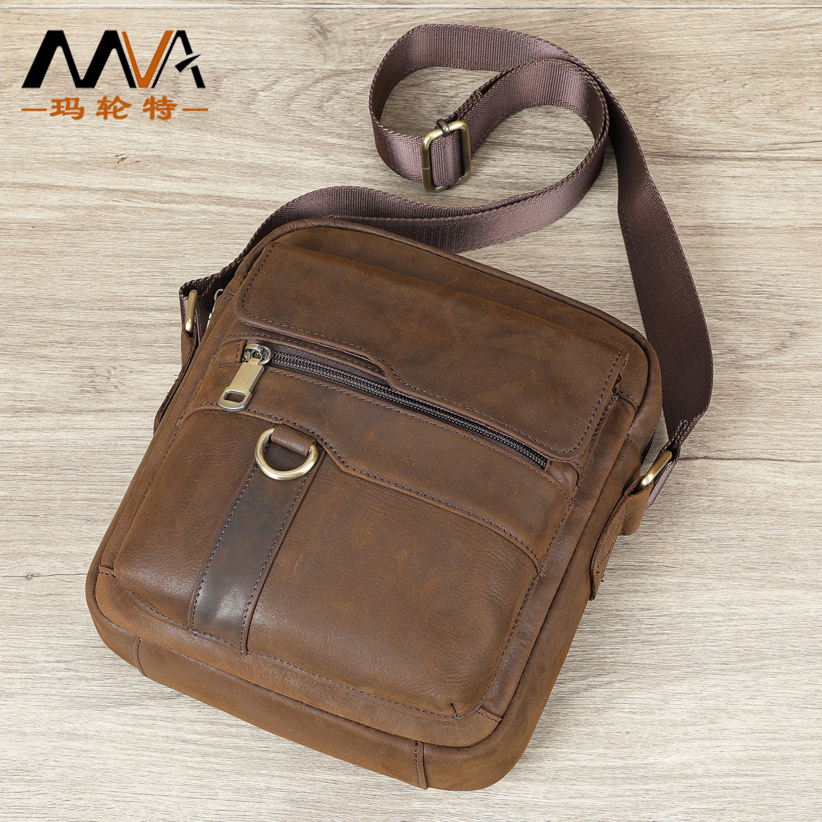 Mva本革メンズショルダーバッグ斜め掛けショルダーバッグトップ層牛革バッグ気違い馬皮トートバッグ男性用シングルショルダーバッグ