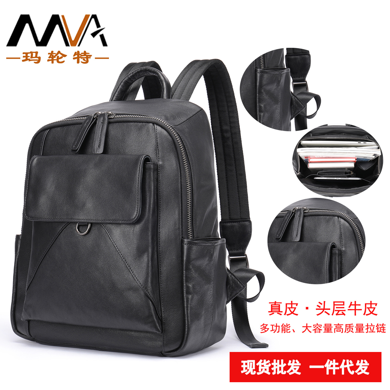 Mvaトップ牛革大容量パソコンバッグ欧米レトロリュックサック多機能アウトドア旅行リュックサック男性