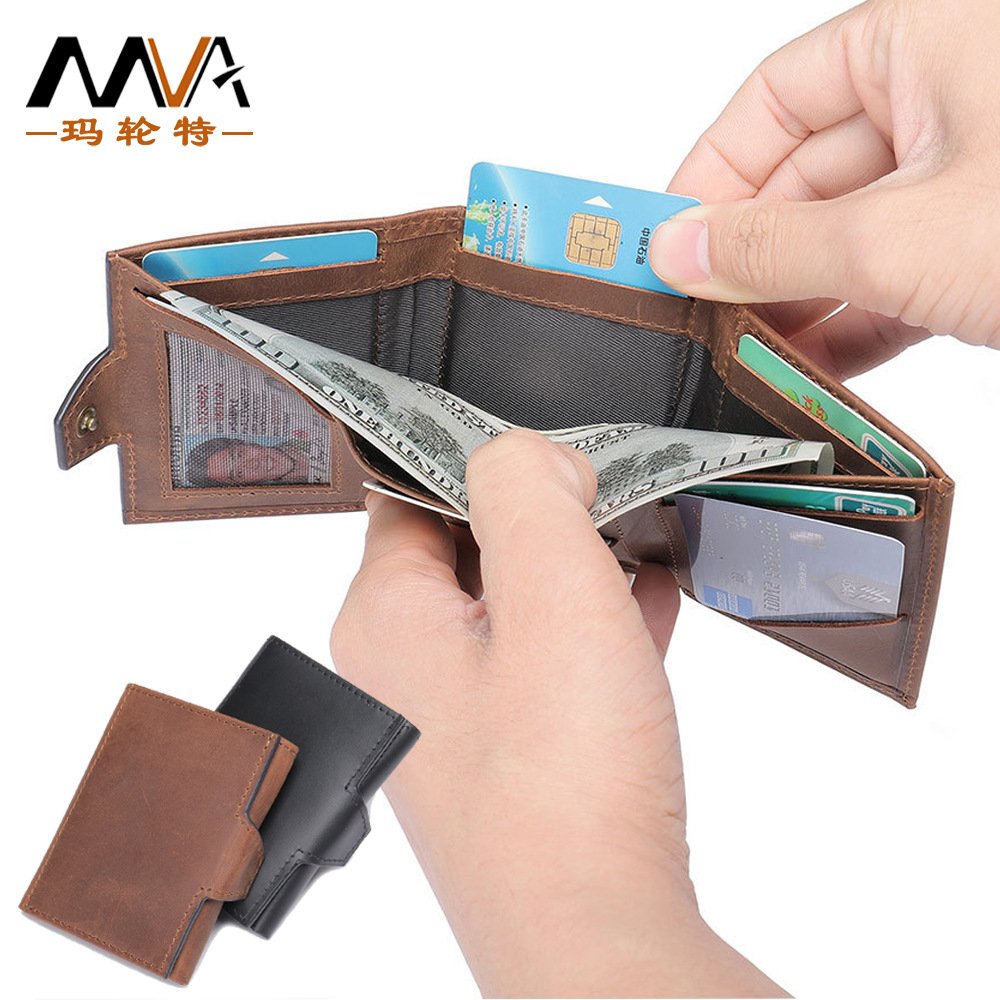Mva本革メンズ財布ショートタイプ2022新作三つ折り狂馬皮小銭入れカジュアル牛革財布卸売り
