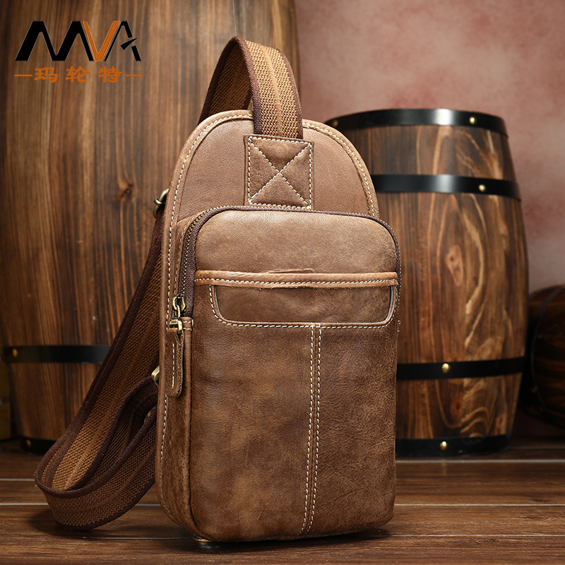 馬輪特新型本革レトロ斜めショルダーバッグ大容量トップ牛革多機能ビジネス男性胸バッグ