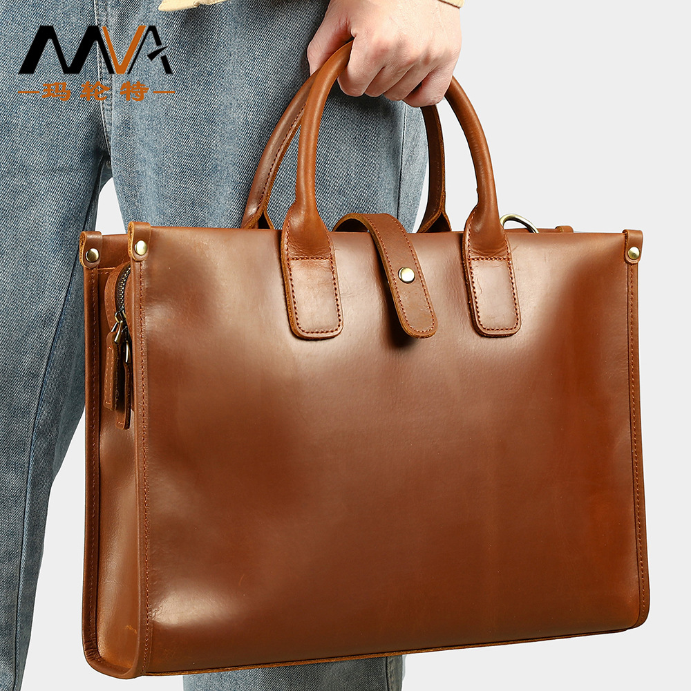 MVAメンズハンドバッグ2022新作ハンドバッグ男狂馬皮挟み大容量本革男性バッグ潮腕バッグ